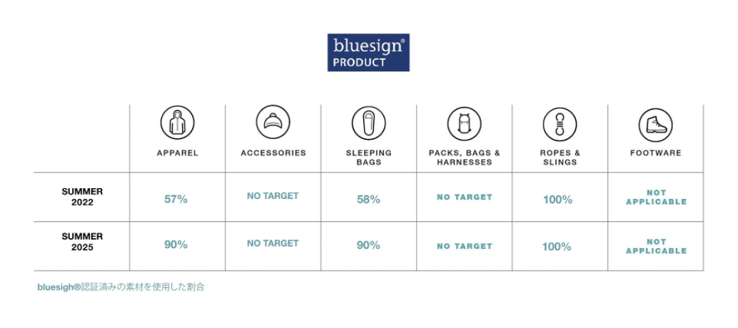 製品に使用されている生地のみ対象。生地の90%がブルーサイン規格で、残り10%は消費者の肌に直接触れない部分に使用。 - ブルーサイン・プロダクツ