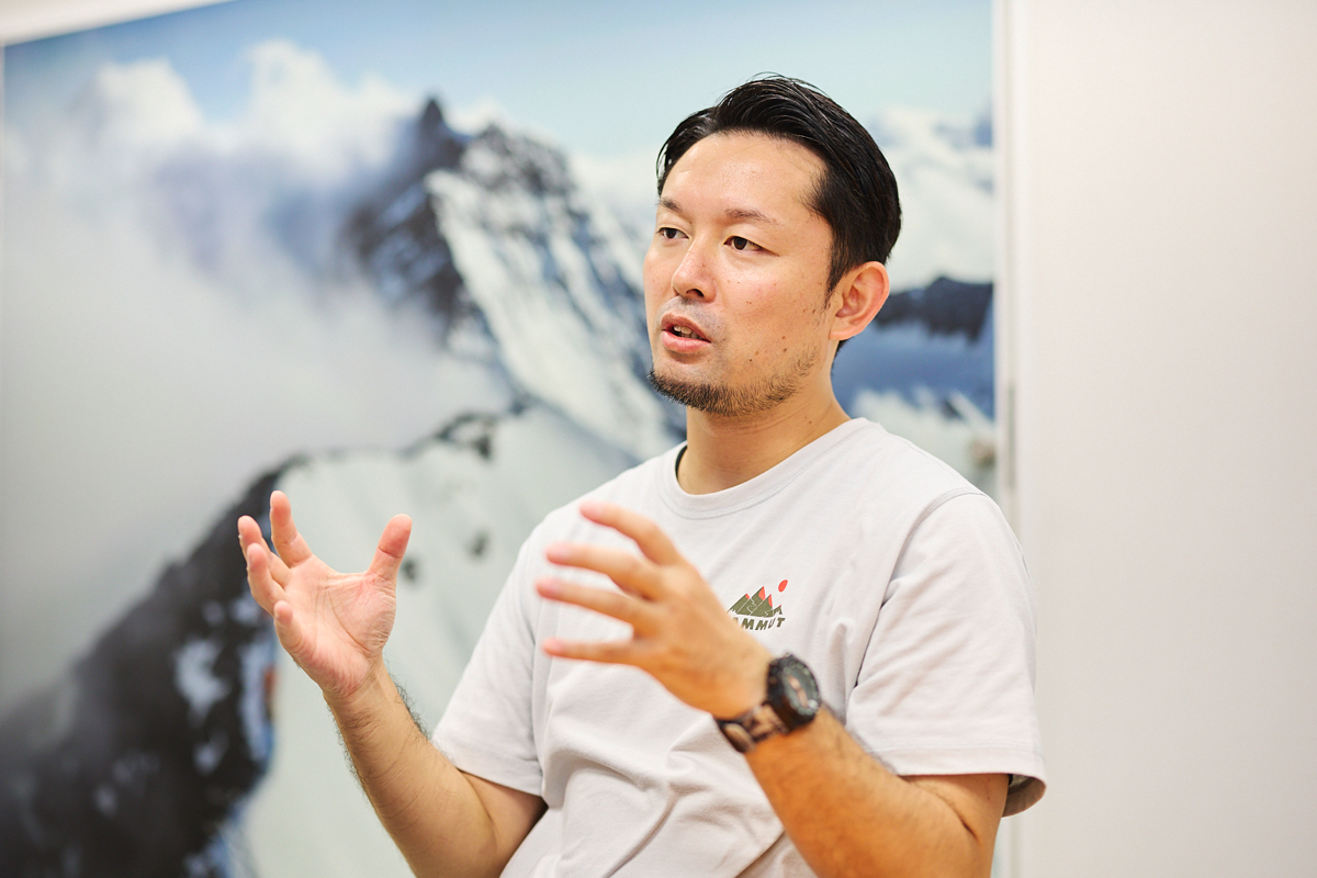 「ブルーサインは世界でもっとも厳しい、環境に配慮した持続可能な製品作りをクリアしたサプライチェーンの証です」と、マムート・マーケティング部の宇津木正太さんは語る。