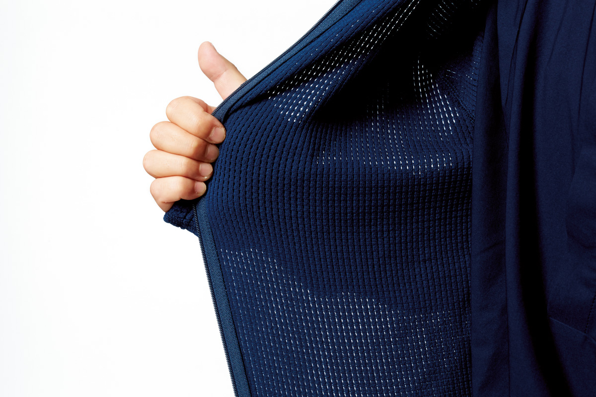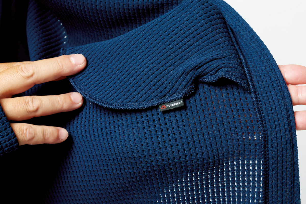 ▲ポーラテック最新のパワードライネットメッシュを使った高性能生地でレイヤリングの幅 がUP。