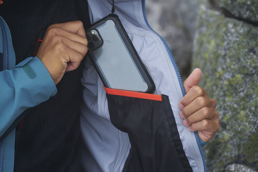 ジャケットの内側にはスマートフォンや昭文社の『山と高原地図』などが入る縦型のメッシュポケットを配置。「トリロジー ティフォン タフⅡ ストレッチ ジャケット」と「ティフォン 50000 ウォーム ストレッチ ジャケット」にある仕様で、さまざまな使用シーンを想定してのちょっとした便利なポイントだ。