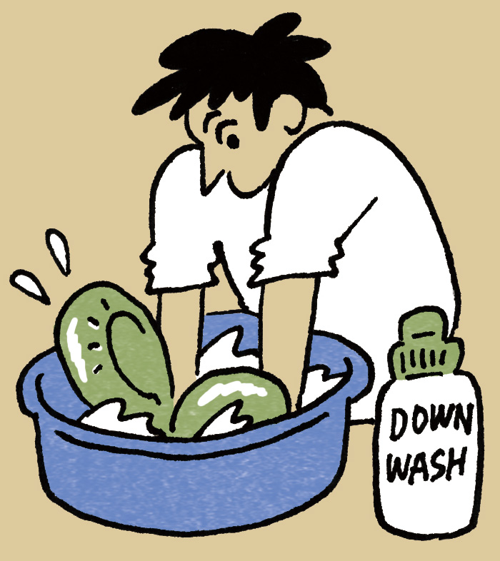 汗や皮脂が付着するほど着用した場合には、しっかり洗濯する。ケアラベルで洗濯方法をチェックして、さらに洗剤はダウン専用のものを使用するのがベター。洗剤が残らないようにすすぎをしっかりして、乾かすときは羽毛がほぐれるように空気を含ませながら乾燥させるとふっくらする。自然乾燥させる場合は、ダウンが片寄らないように平干しで。