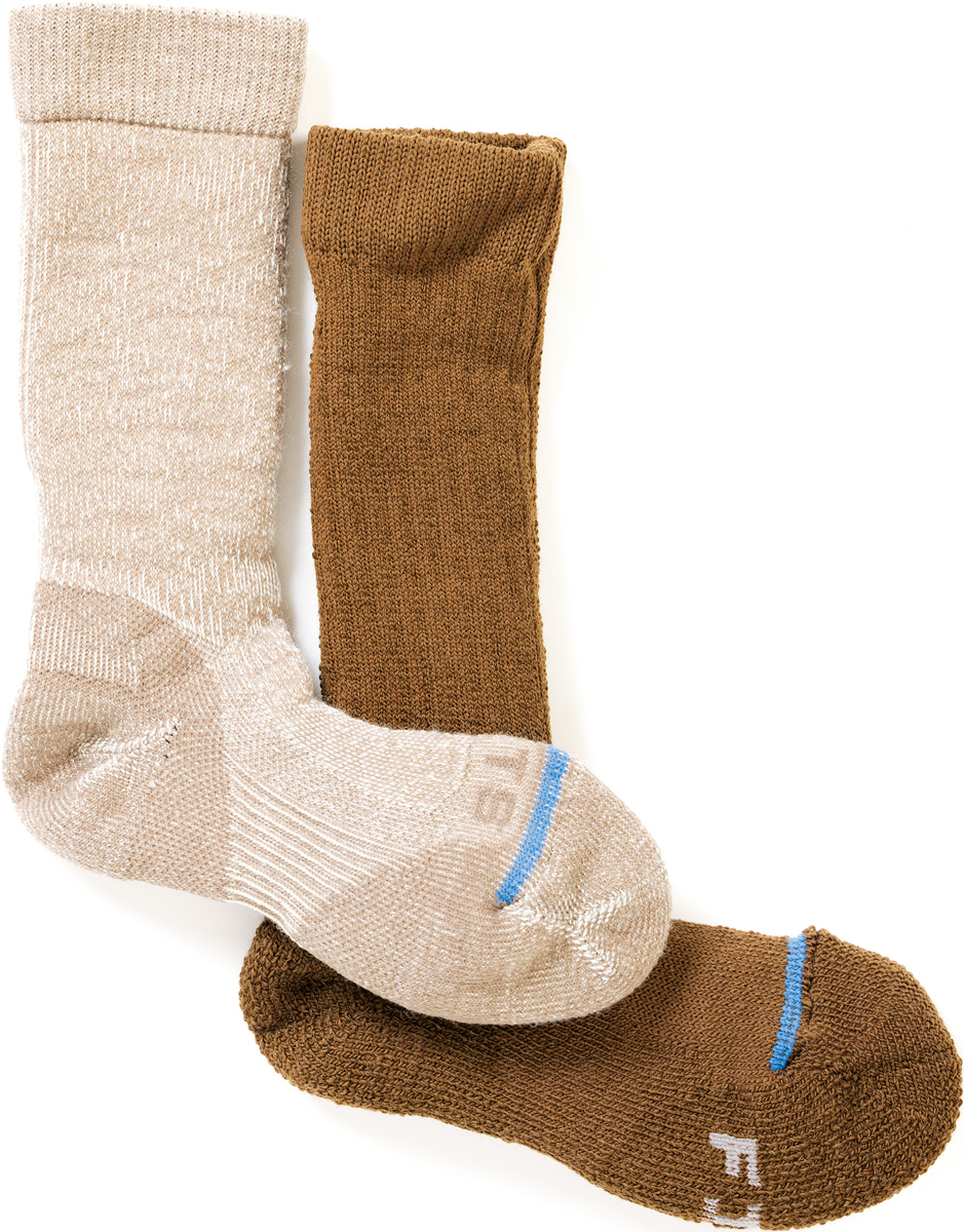 ついあとまわしになりがちだが、登山活動のなかで果たす役割が思いのほか大きいのがソックスだ。登山靴と人の足とをつなぐインターフェイスとなりながら、かいた汗を吸収し、足をなるべくドライな状態に保つことで足のトラブルを防ぐという大切な役割が求められる。また身体の末端にある足の冷えを極力抑える保温効果も忘れてはならない。