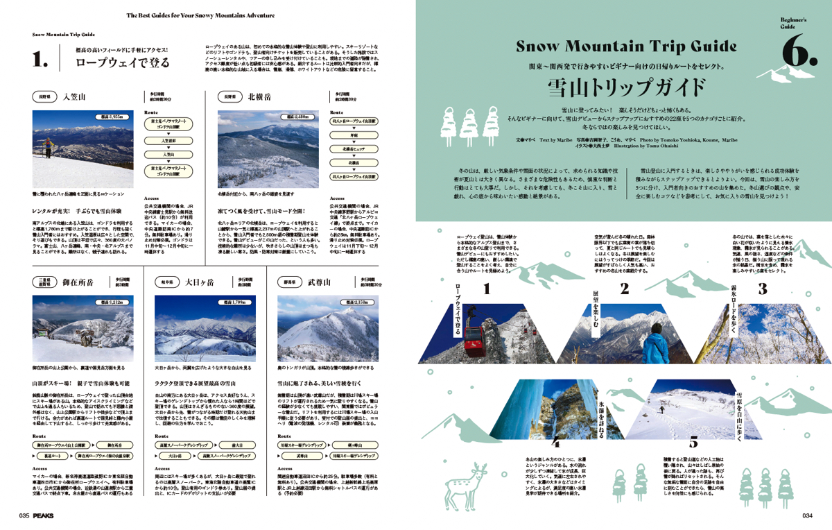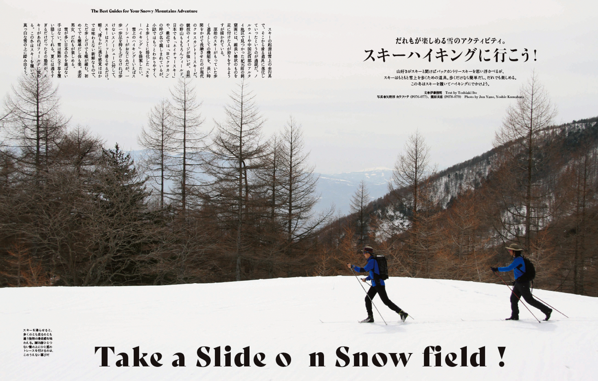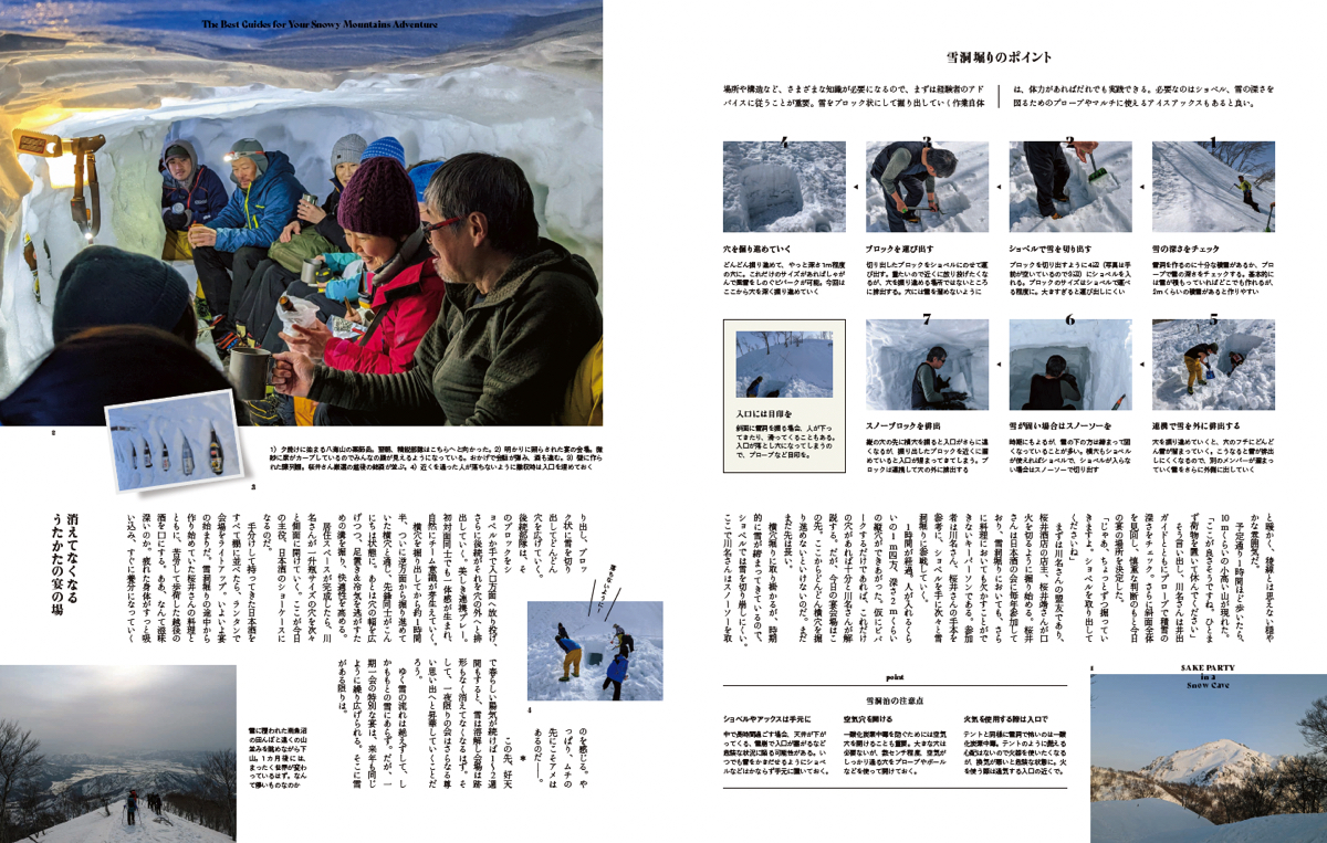 本格的な雪山登山から、スキーハイキングや雪洞でのパーティ、山スキーと雪中テント泊まで、今号では幅広い雪山での遊び方をご提案します。