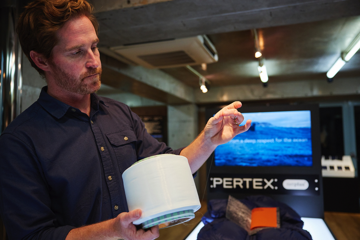 数多くのアウトドアブランドを中心に素材提供しているPERTEX(以下、パーテックス)も、そんな素材メーカーのひとつだ。2015年9月の国連サミットで加盟国の全会一致で採択された「持続可能な開発のための2030アジェンダ」によって目指す開発目標を実現するアクションを実施している。リサクル素材の活用、原料を部分的にバイオベース化することや、糸の生成時に着色することによる大幅な節水、環境に悪影響のあるフッ素由来の撥水剤不使用等が挙げられる。