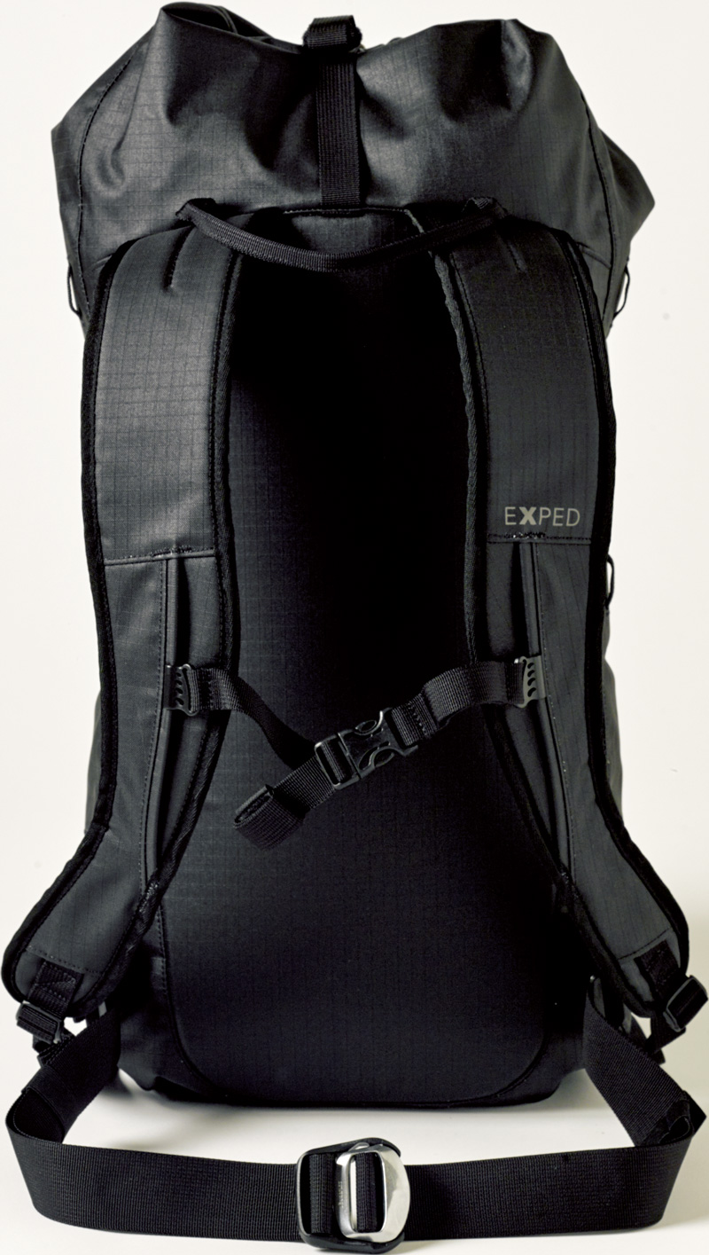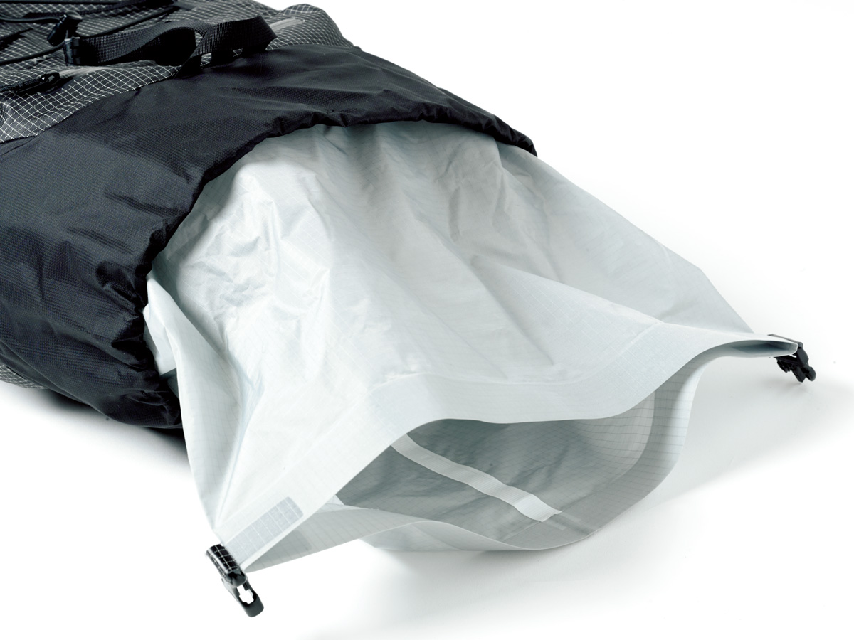 独自素材のアズテックをメインに、500デニールのコーデュラナイロンを組み合わせて、高い堅牢性を備えたテクニカルパック。本体内部の背面パッドシートは、取り外して簡易的なスリーピングマットとしても使用可能で、装備の軽量化も図られる。