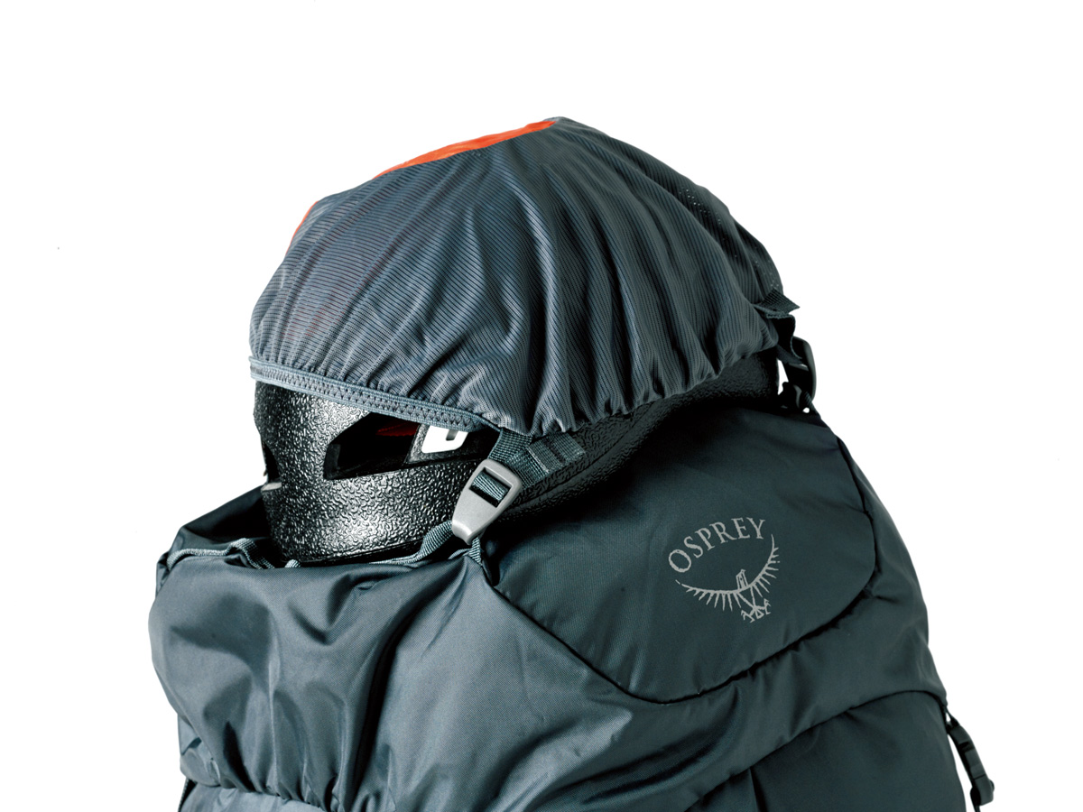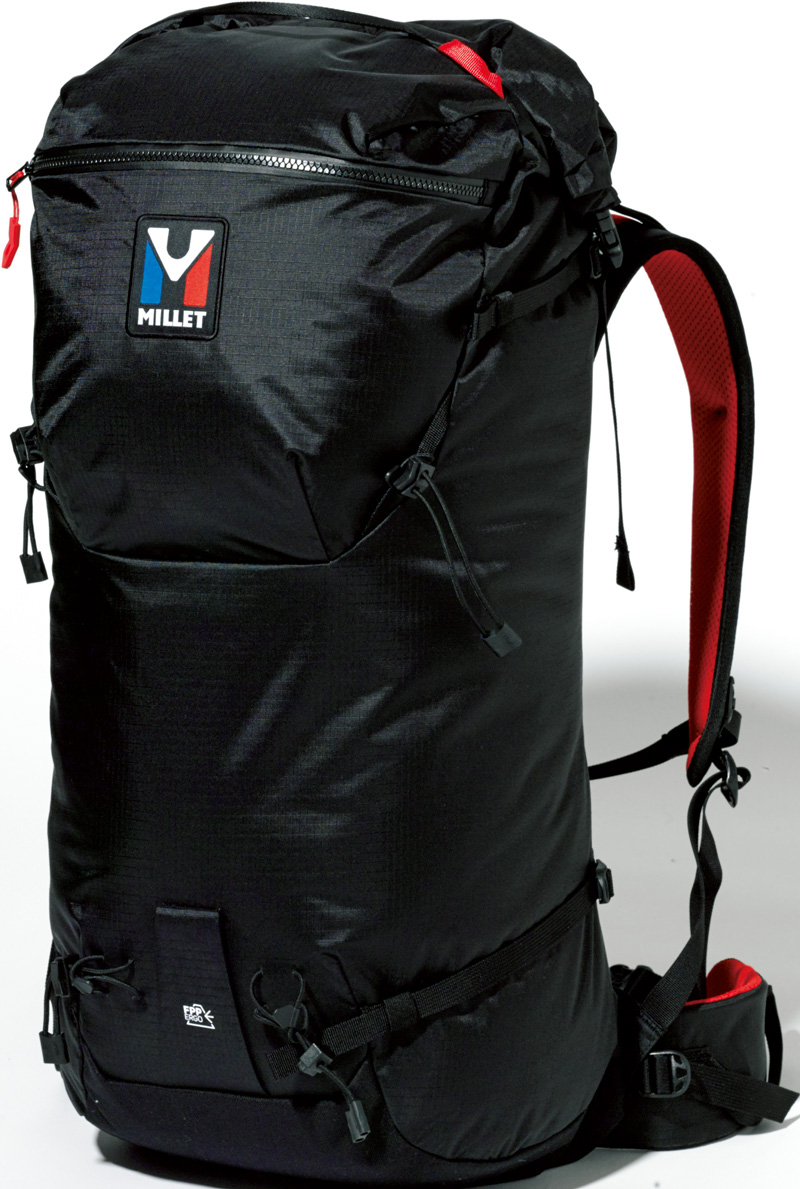 山岳フィールドでの実用性を高めるため、クライマーチームと共同開発。アルパイン環境に対応するタフさと軽量性を両立している。フロントにはスムーズに収納できるクランポンポケットやアイスアックスホルダーなどを装備。