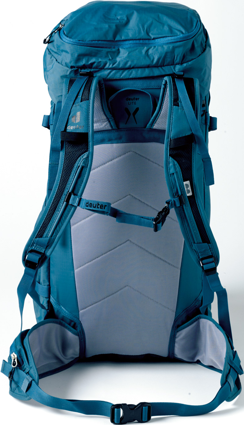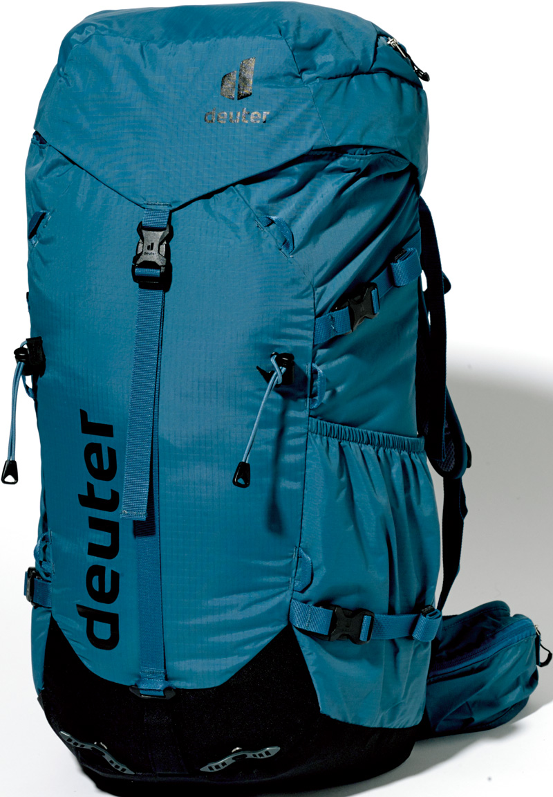 アルパインクライミングに求められる軽さを追求しながら、ドイターが理念とする快適な背負い心地も両立。内蔵フレームなどは取り外すことができ、さらに150gの軽量化ができる。トップリッドを調整することで、最大12ℓ分の容量を拡張可能。