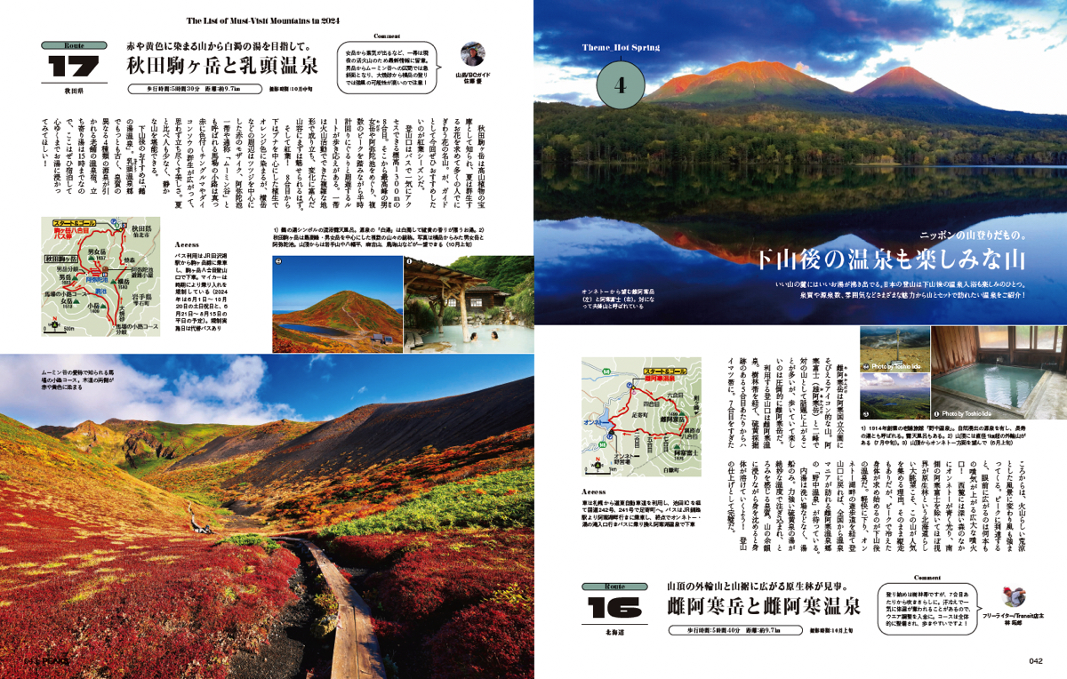 ▲登山と温泉はセット、という方も多いのでは?下山後に温泉が楽しめる山も掲載しています。