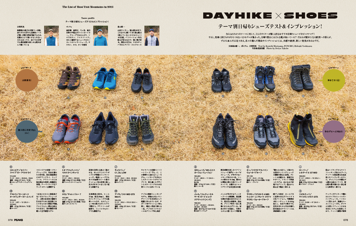 テーマは「初めての1足」「冬のデイハイク向け」「山と街兼用で履けるモデル」「個人的に買いたいもの」。