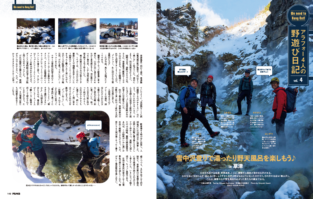 アウトドアメディアに身を置いてしまったことで、普通の登山では満足できない。しかし、未踏峰を目指す度胸もない。そんなアラフォー4人が繰り広げる珍道中連載。