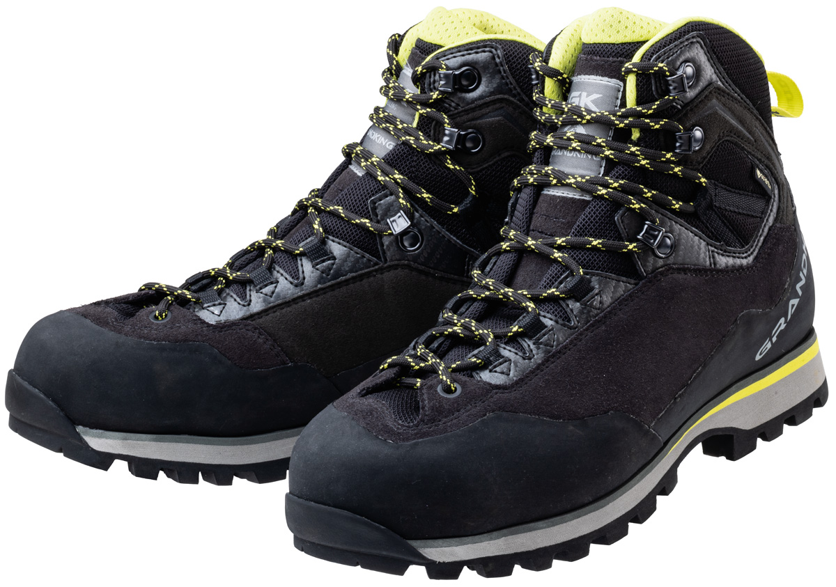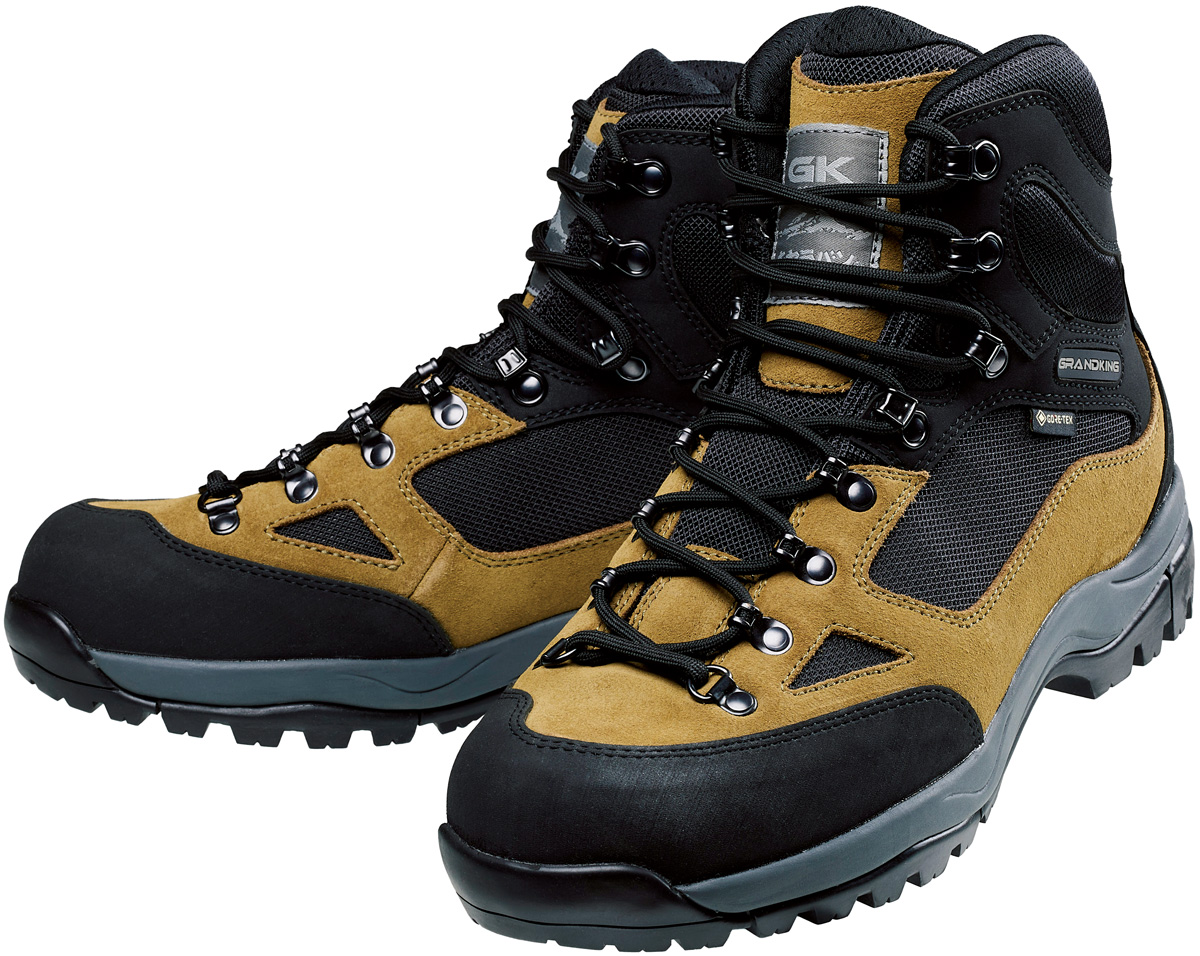 よりハードな登山に対応する「グランドキング」ブランドの新製品。アウトソールのグリップ力が高く、難路でスリップを抑えてくれる。緩みにくいストッパー付きシューレースも使いやすい。