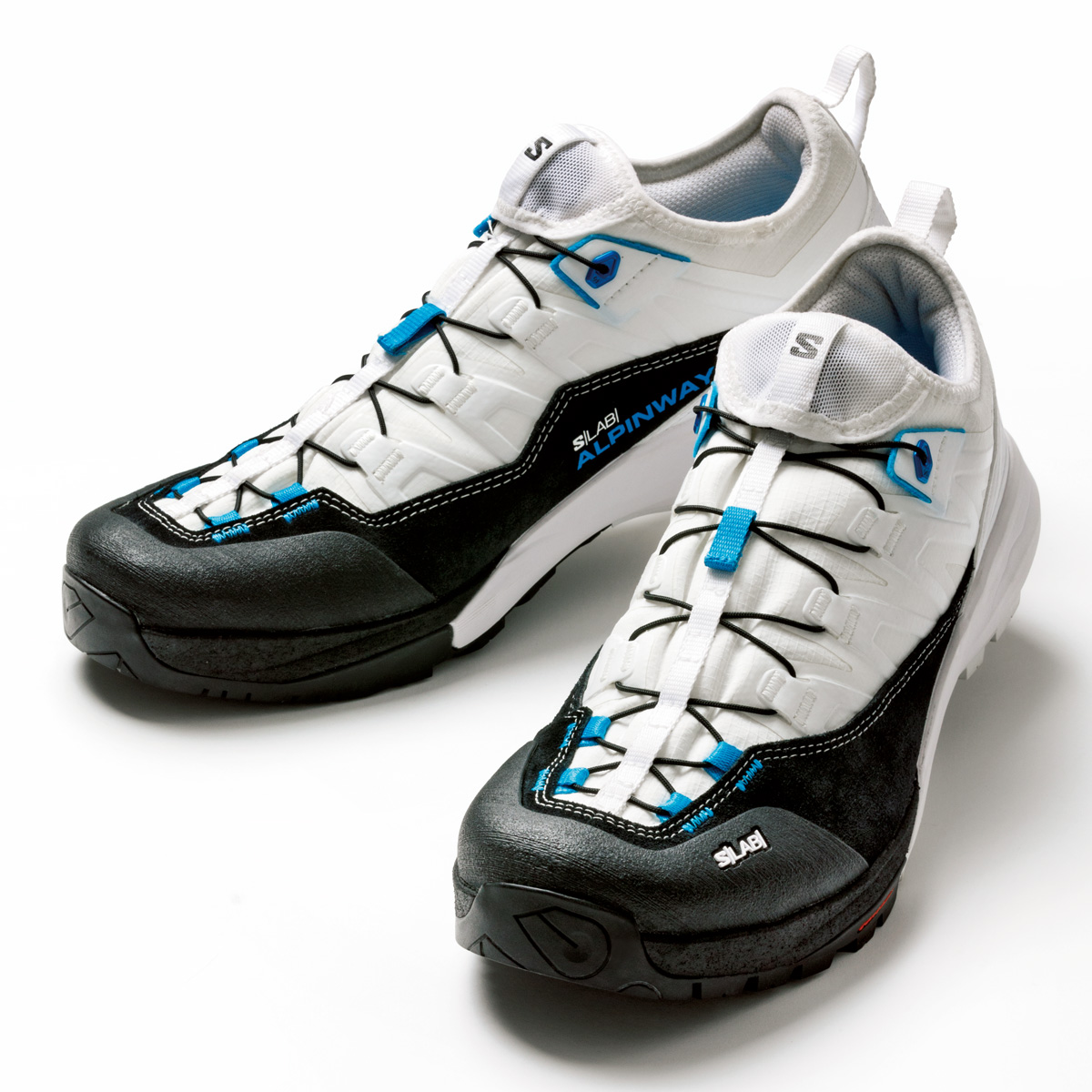一般的には難所とされるような岩場を駆ける遊び、スクランブリング。このスクランブリングのために生まれたのが「S/LAB アルパインウェイ」である。普通の登山者には無縁なのでは……と思うかもしれないが、アプローチシューズのように岩場を登れて、トレランシューズのように走ることもできるハイブリッドな性能は、山登りでも活躍してくれる。