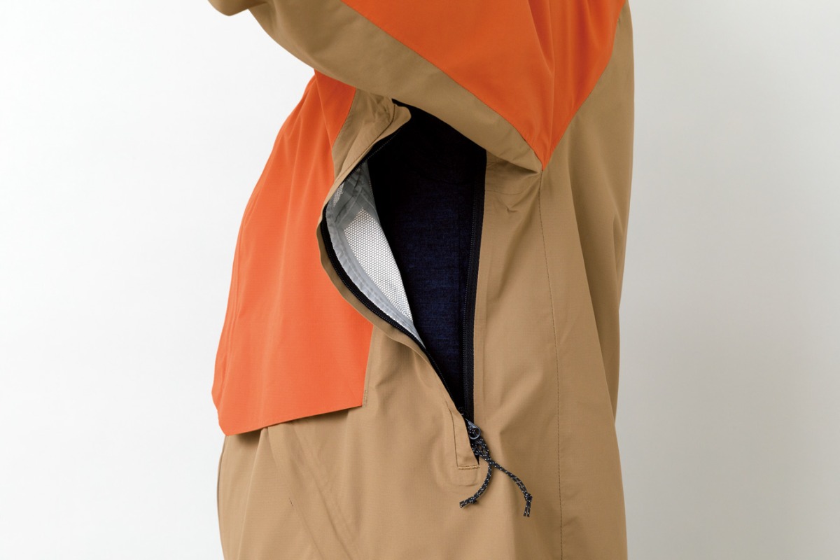 素材自体の透湿性が高いが、それをさらにアシストするように脇下にはピットジップが。蒸れを感じたらすぐに湿気を排出することができる。