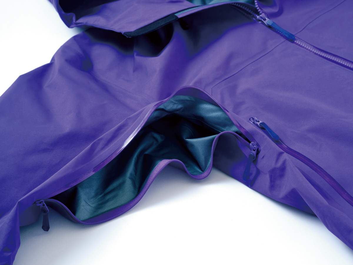非フッ素系のePEメンブレンを採用した新しいゴアテックスを使ったハードシェル。メンブレンの変更によって素材自体がより薄く、軽く、やわらかくなり、裏地のCニットバッカーと相まって、しなやかで軽々とした着心地が特徴的。ヘルメット対応ストームフードやピットジップを備え、岩稜を含んだアルパインエリアでの登山に最適。