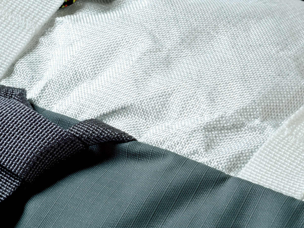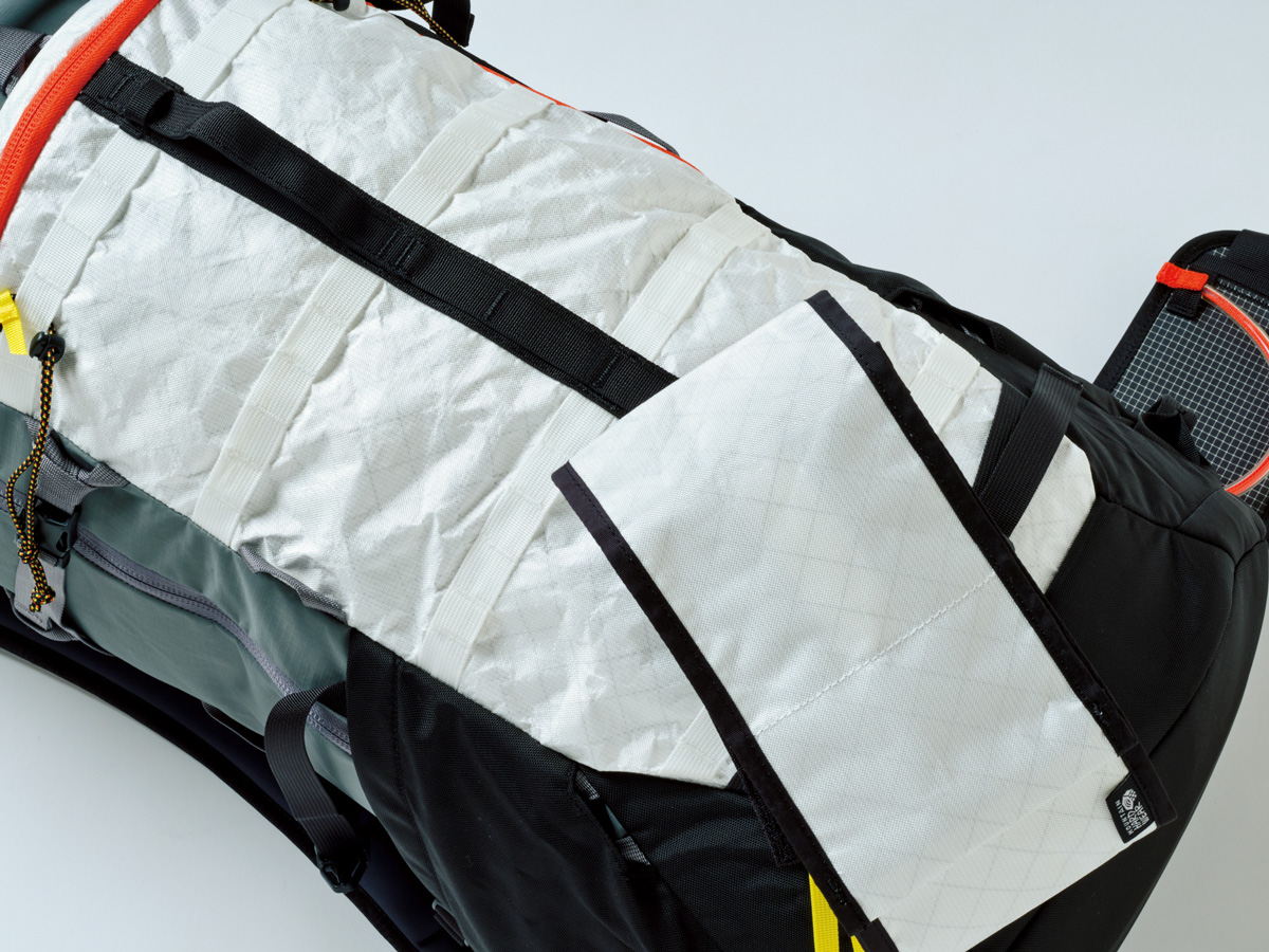 部位によって3種類の生地を使用。フロントには引き裂きに強いウルトラ 400TXポリエステルリップストップを採用した。