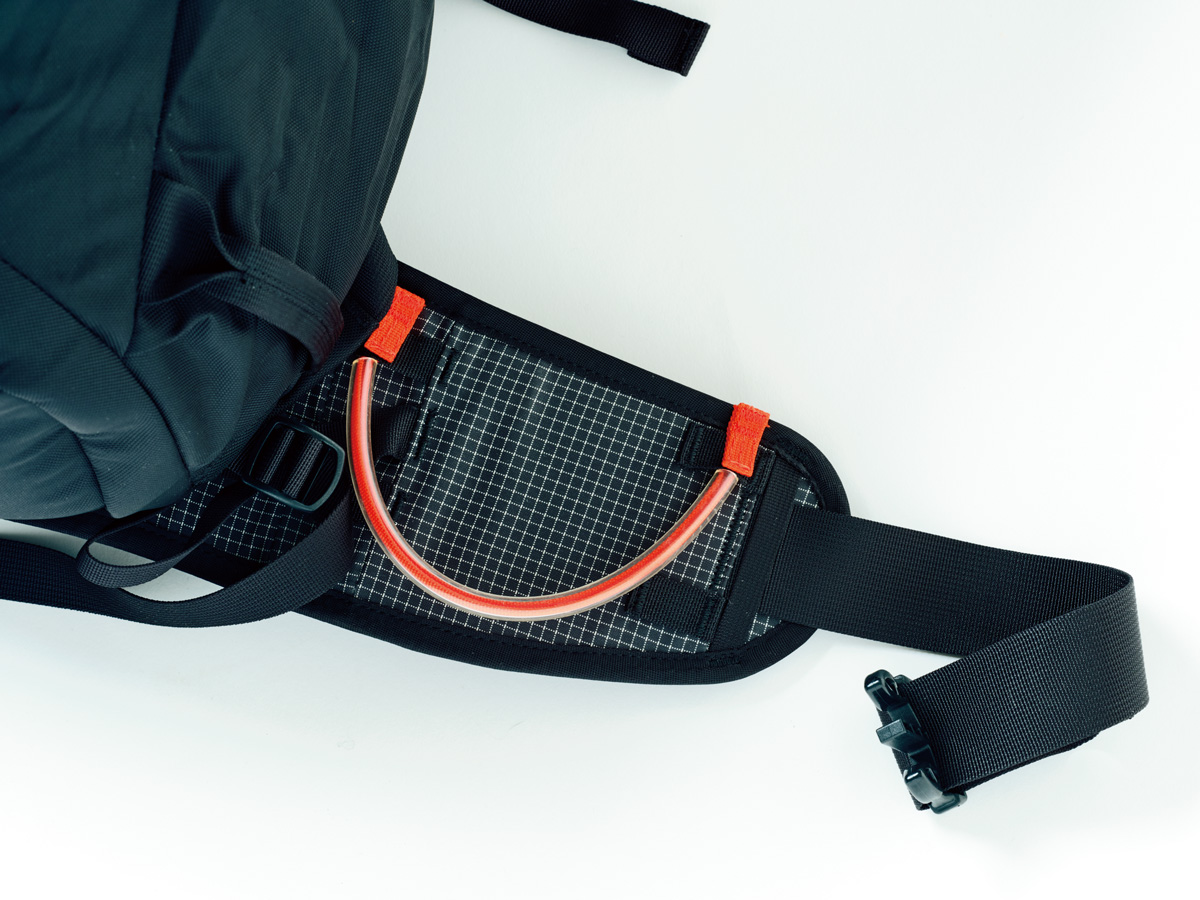 ウエストハーネスにはポケットとギアループが付属。着脱式のため好みで左右を変えられるほか、取り外すこともできる。