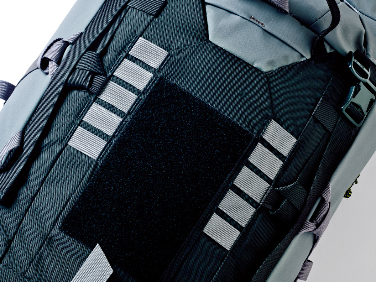 クランポンポケットが付属。フロントパネルには4本のデイジーチェーンが配置され、好みの位置に取り付けられる。