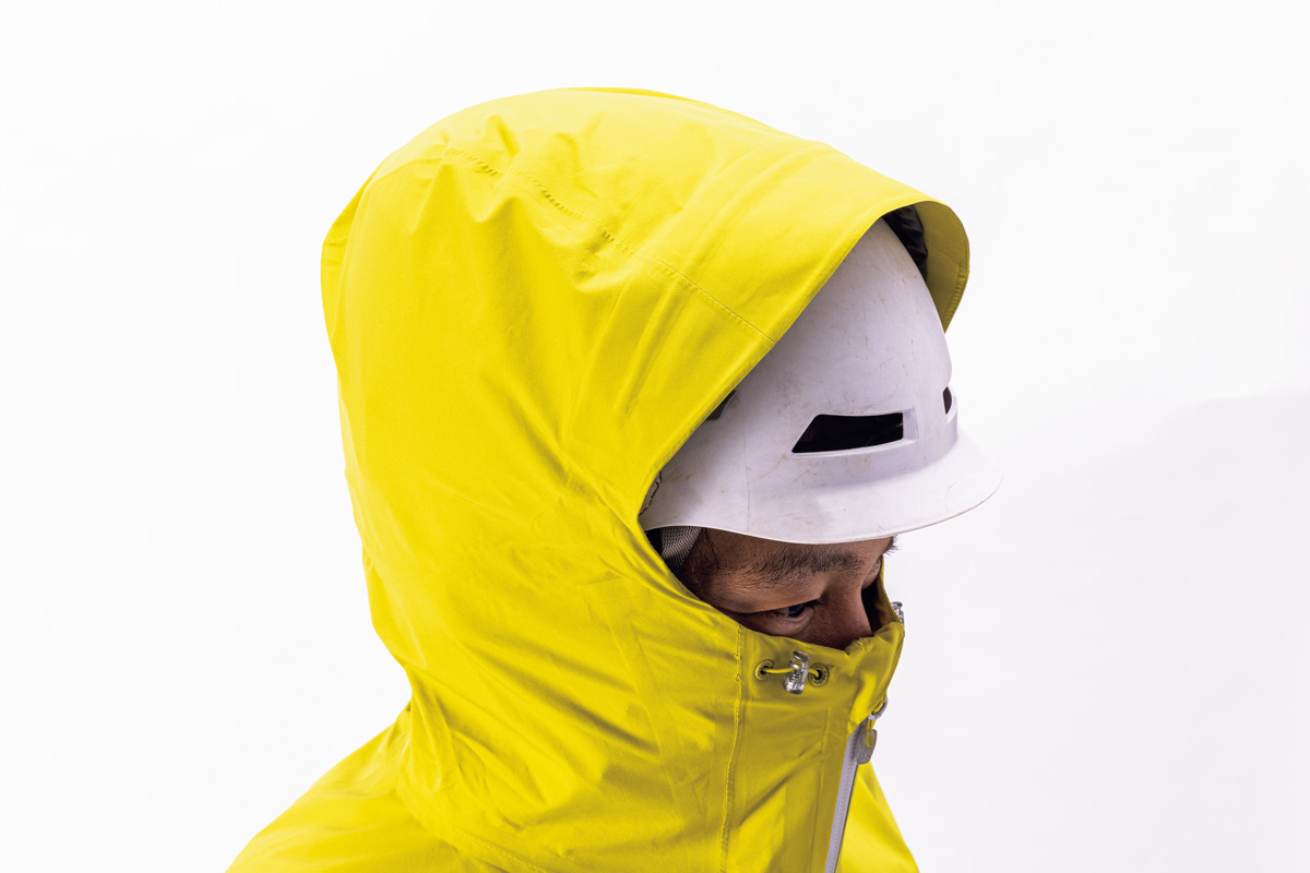 フォームが入ったツバは広い視界を確保する。またヘルメットに対応し、ドローコードで微調整が可能だ。