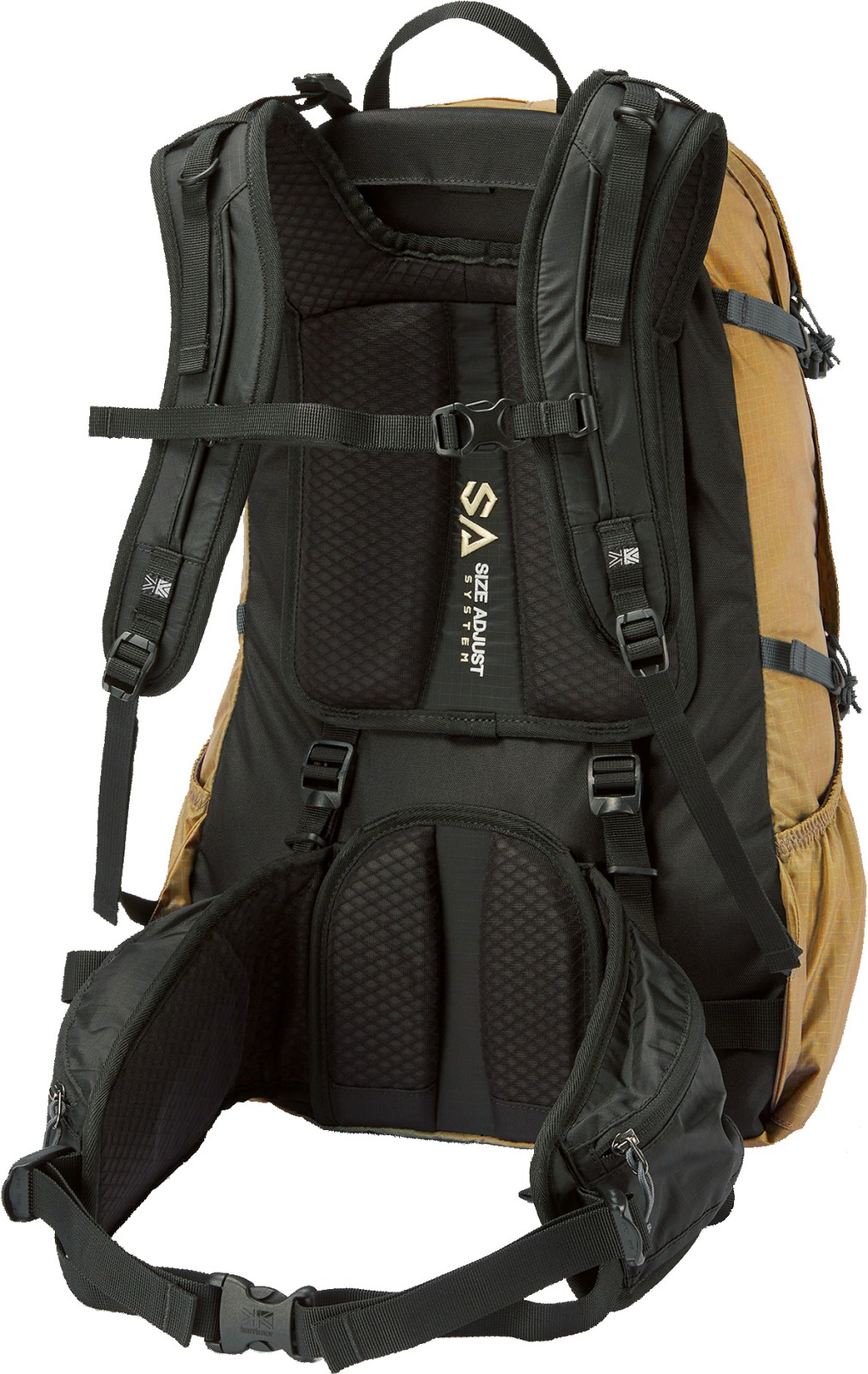 日帰りプラスαの山行に最適な27ℓ。背負ったまま背面長の調節が可能なサイズアジャストシステムを採用。ポールキャリアなどを取り付け可能なアタッチメントループも装備している。