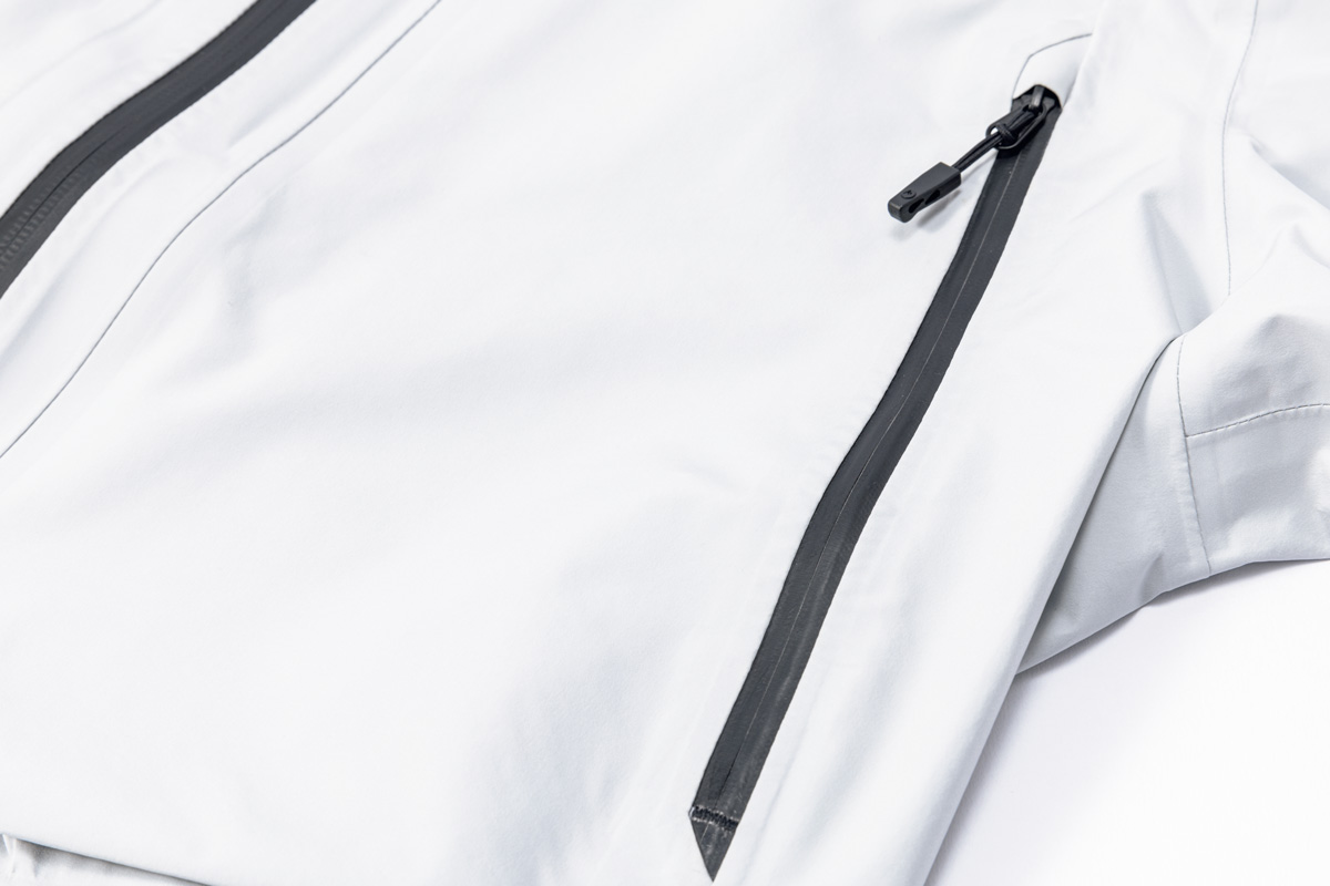 防水性と通気性が非常に高いアウターシェルジャケット。独自開発した防水透湿素材は経年劣化にも強く、長く使うことができる。軽量なため、コンパクトに携行も可能。