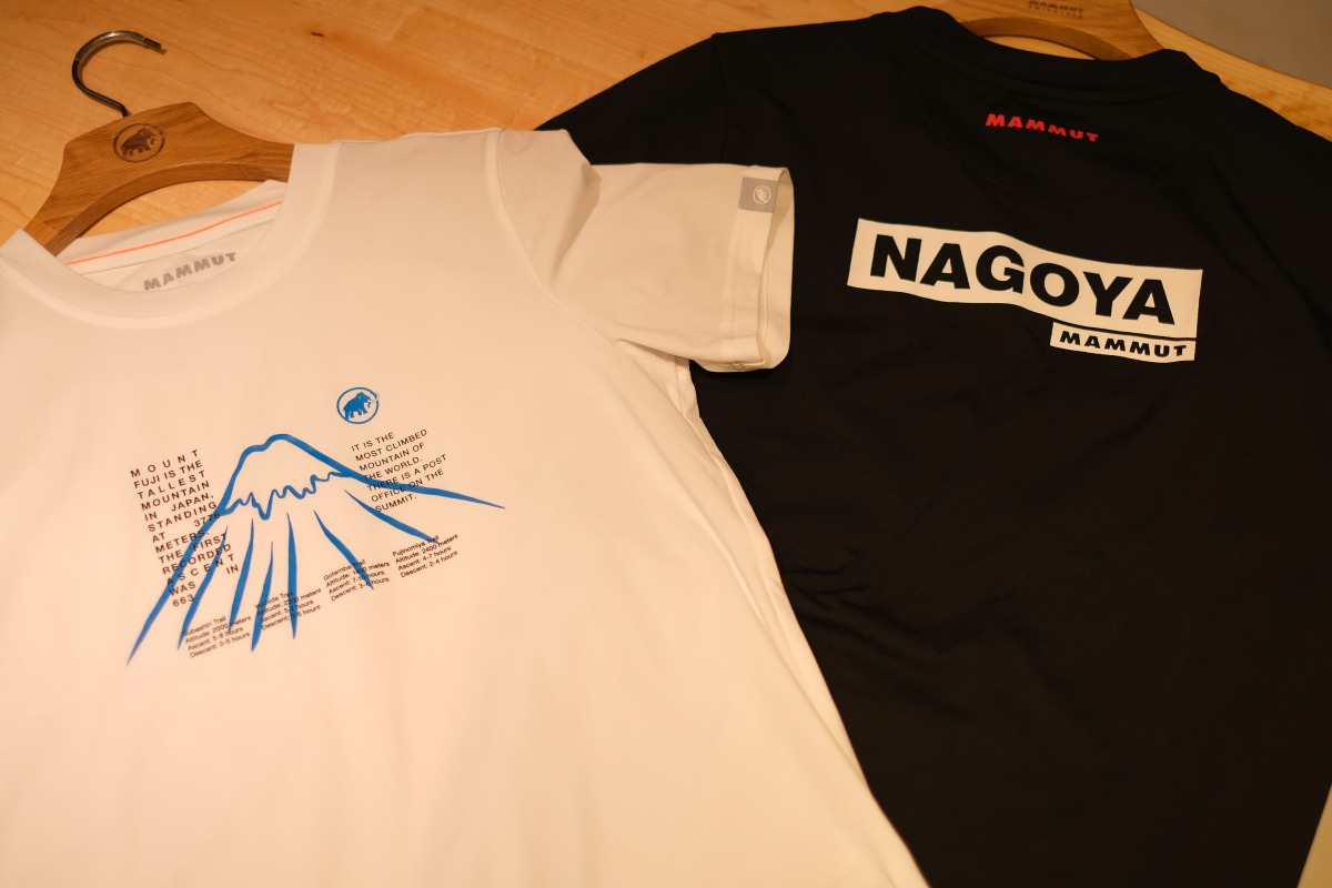 「マムート 名古屋 LACHIC」では、限定プロダクトも販売。スイスのチーフデザイナーが描き下ろした富士山に、富士登山の4ルートや山の情報を英字でプリントした「QD Fujiyama Print T-Shirt AF」の先行販売や、背中に大きく「NAGOYA MAMMUT」とプリントされたTシャツの新店舗限定発売も!