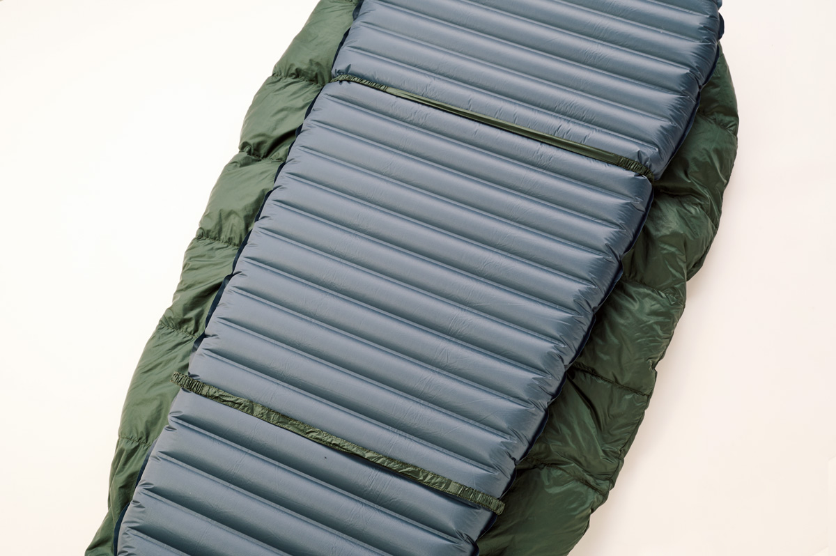 最近増えているのが、スリーピングバッグとマット、ピローなどをシステム化してセットで使うタイプ。以下のゼンビビィの製品のように、アイテム単体の力ではなく、セットの総合力で快適性を向上させるという考えだ。重量のわりに保温力が高くなる場合も多く、試す価値はある。