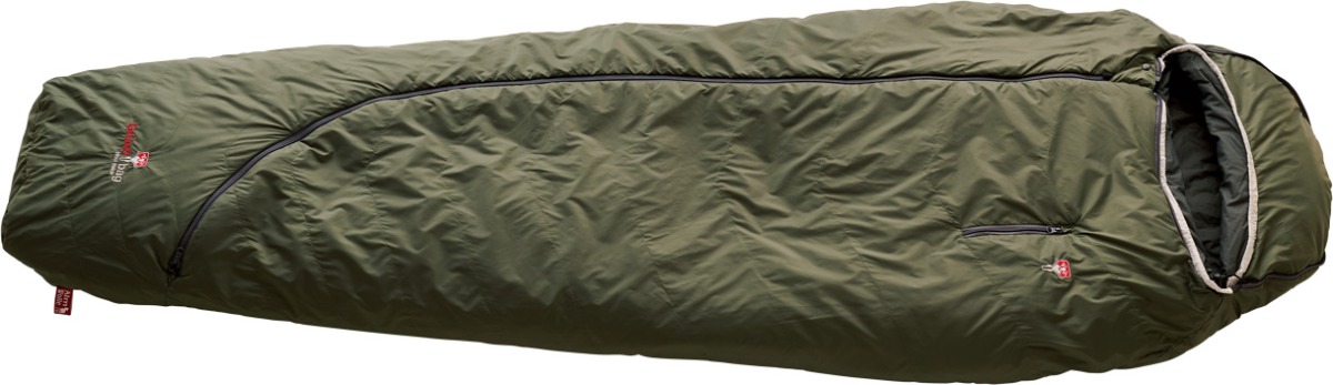 寝袋の保温性を大きく左右する湿気や水分のコントロールに長ける特殊加工のウールを化繊の中綿とともに使用。内部をドライにキープする。少々重いが、バグネットも付いており、テントなしでも一晩すごせる。