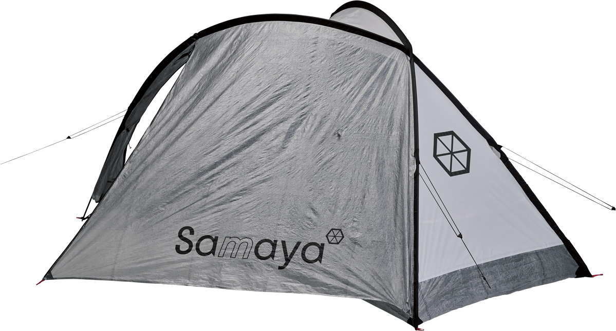 本来はビバーク装備の一種だが、超軽量シェルターとして宿泊に使う人も多いのがツエルト。この大型は重量570gほどしかないが、座ったままかぶれば4人ほど、トレッキングポールなどで立体化させれば2 ~ 3人が横たわれ、広げればタープとしても利用可能だ。
