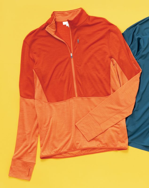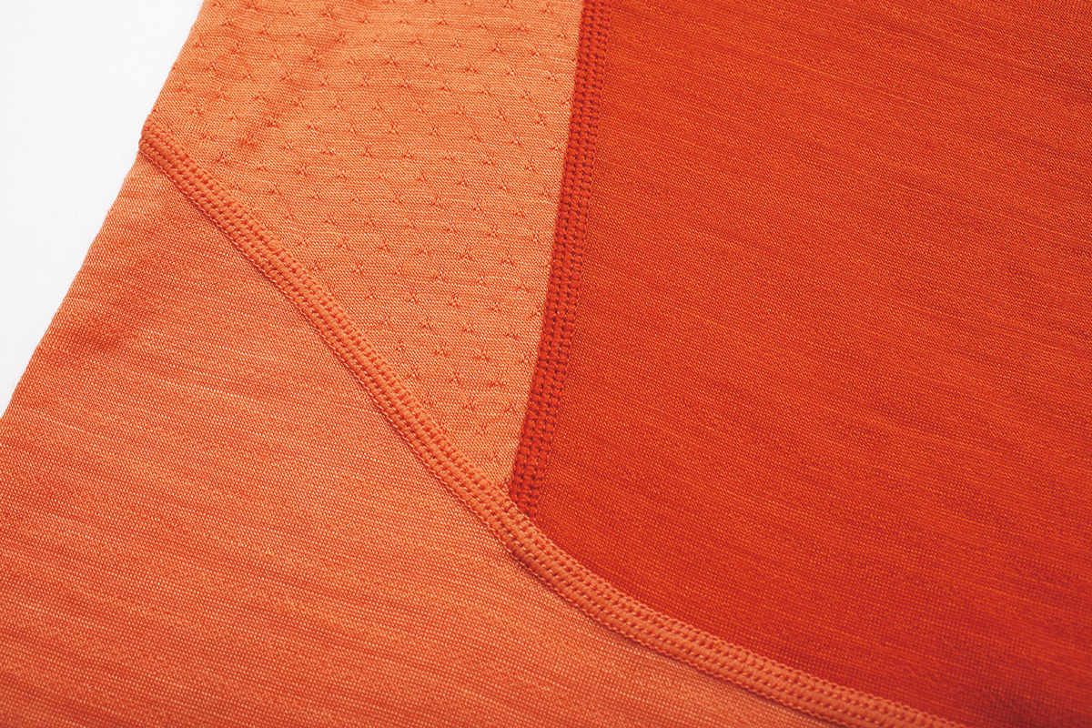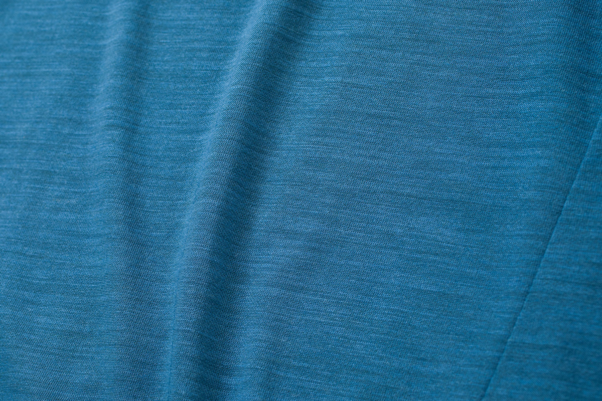 サラリとした風合いや乾きやすさをもつリヨセルをウールにブレンド。内側が起毛と薄手生地のストライプ構造で、通気性と保温性のバランスがいい。中間着として作られたウエアだが、直接肌の上に着用も想定している。
