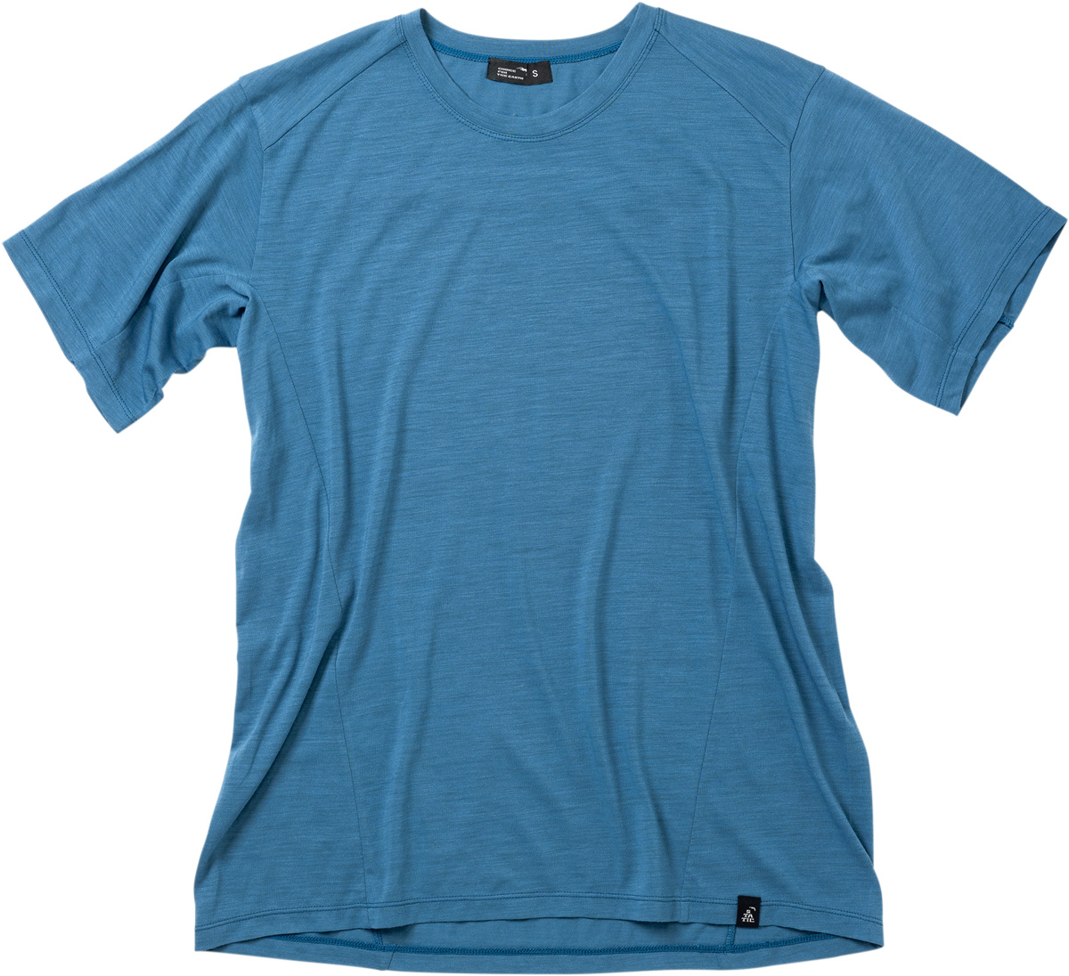 オーストラリア産のスーパーファインメリノウール100%のTシャツ。濡れてもしっとり暖かく、暑いコンディションでは涼しく感じられるといったウールの特製を、山から日常まで着用できるシンプルなデザインに落とし込んだ。