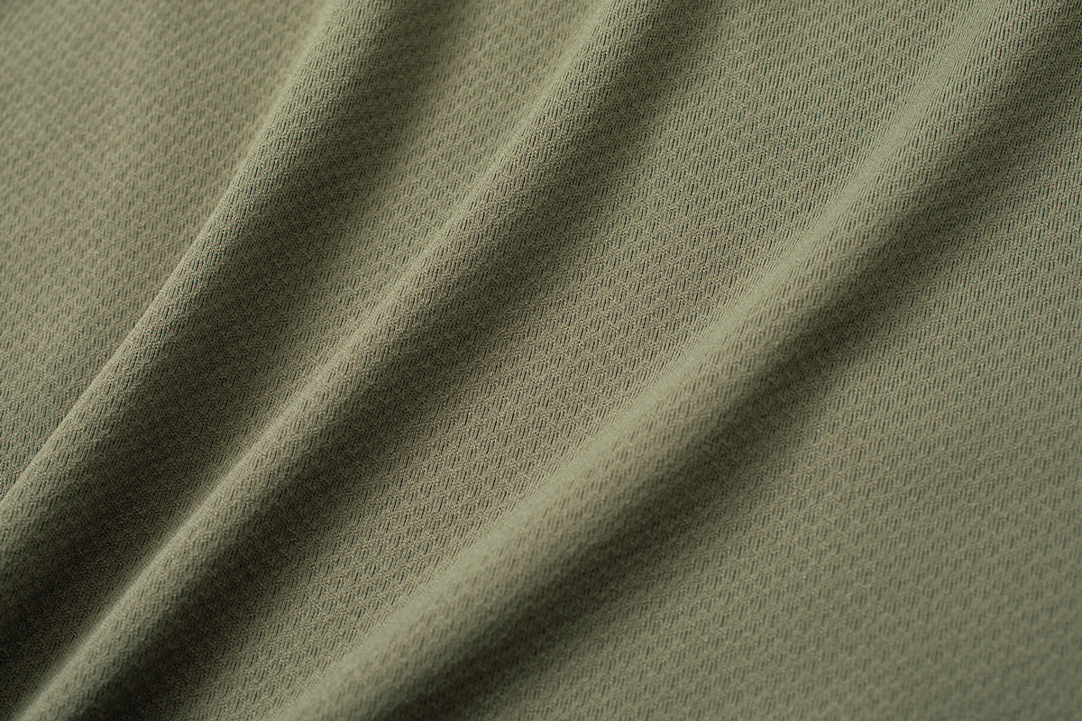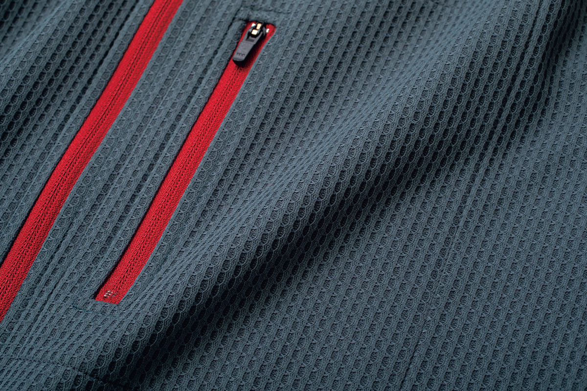 表と裏を個別にメッシュ状に編み上げ、そのふたつを合わせることで通常のTシャツよりも暖かく、かつ蒸れず速乾性をもつ生地に。通気や換気、保温機能をバランスよく備えた新素材で、3つのアイテムをラインナップ。