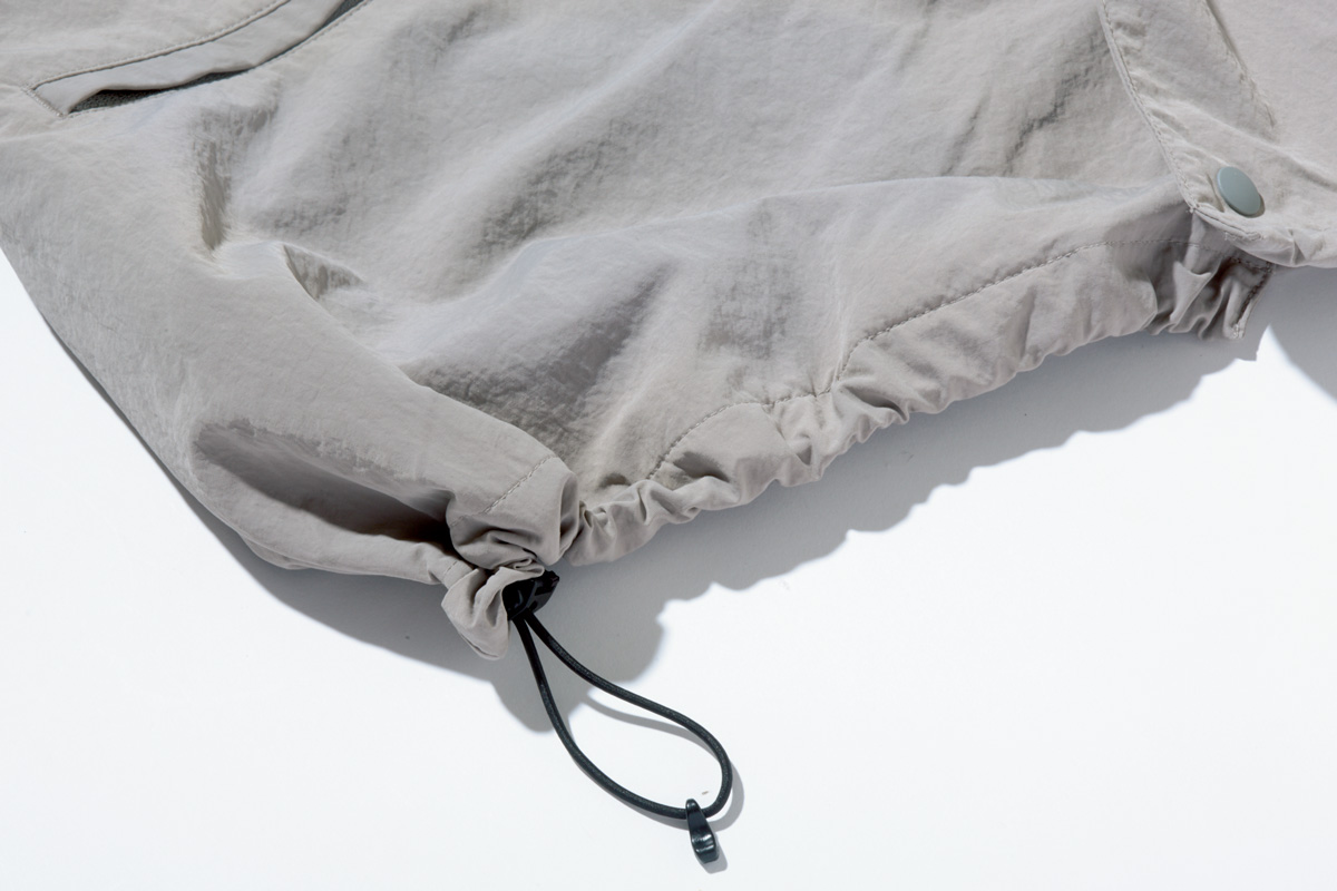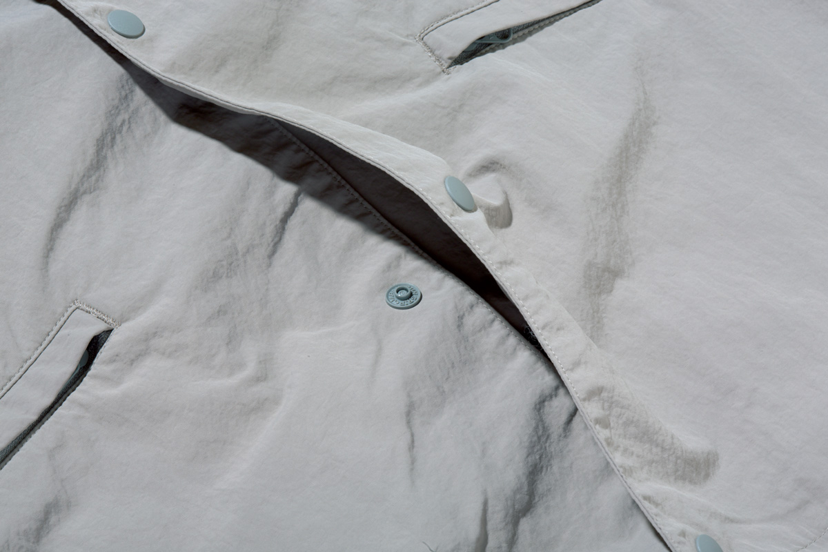 古くからスポーツに欠かせないラグランスリーブを採用し、肩周りは動かしやすい。水平に近いファスナー付きポケットは見た目以上の収納力をもつ。シリーズ全体がビッグシルエットとなるため、サイズ選びは慎重に。