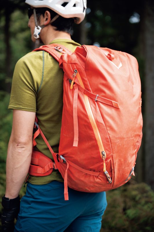 岩稜帯を歩くときは出っぱった岩などの障害物もあるため、引っかかりのないシンプルなバックパックを選ぶといい。縦走時でも軽量化を意識し、外付けを極力避けること。装備はパックの中に収めよう。