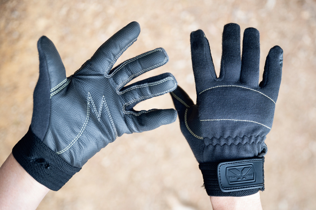 岩稜帯では積極的に手を使って登るシチュエーションが多く、ケガをする可能性も高まるためグローブを装着したい。手のひらが滑りづらくなっている革製のもので手首が留められるものがベスト