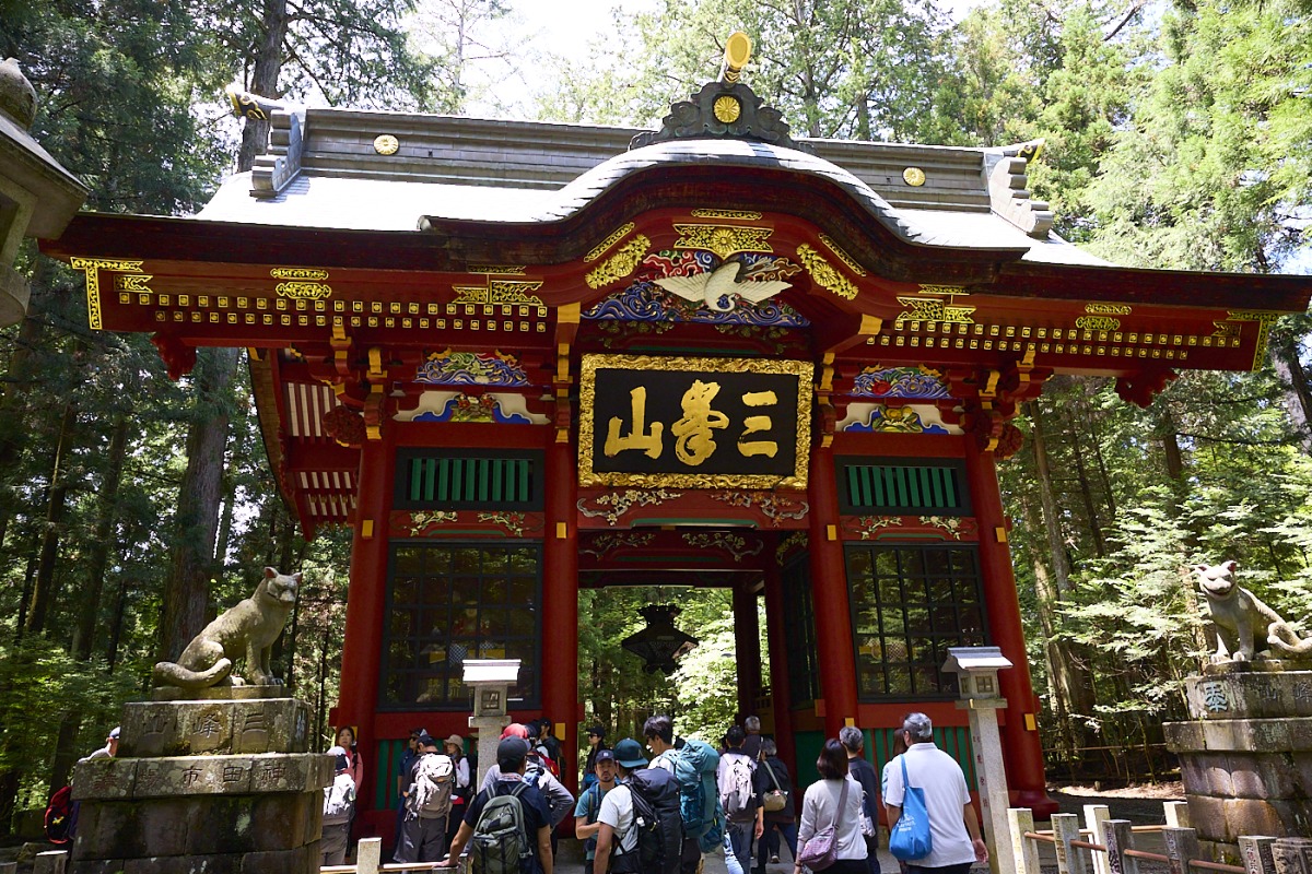 歓声のあがった立派な山門は三峯神社の象徴、随神門。日本では自然崇拝、神道が古くから根付き、そこへ海をわたってきた仏教が結びつき、神道と仏教が融合して日本独自の山岳信仰がうまれたのだと、信仰の歴史を聞きました。三峯神社も神道と仏教の両方が色濃く残る神社であり、この山門は神仏習合の名残の一つだそうです。