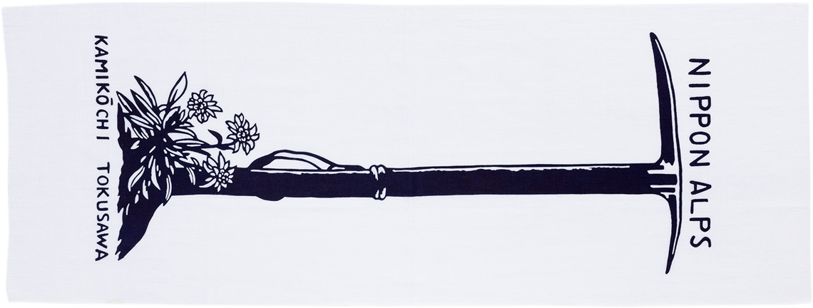登山の象徴でもあるアックス柄に徳沢の象徴のニリンソウをあしらって。
