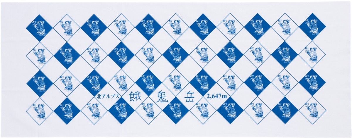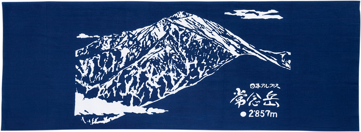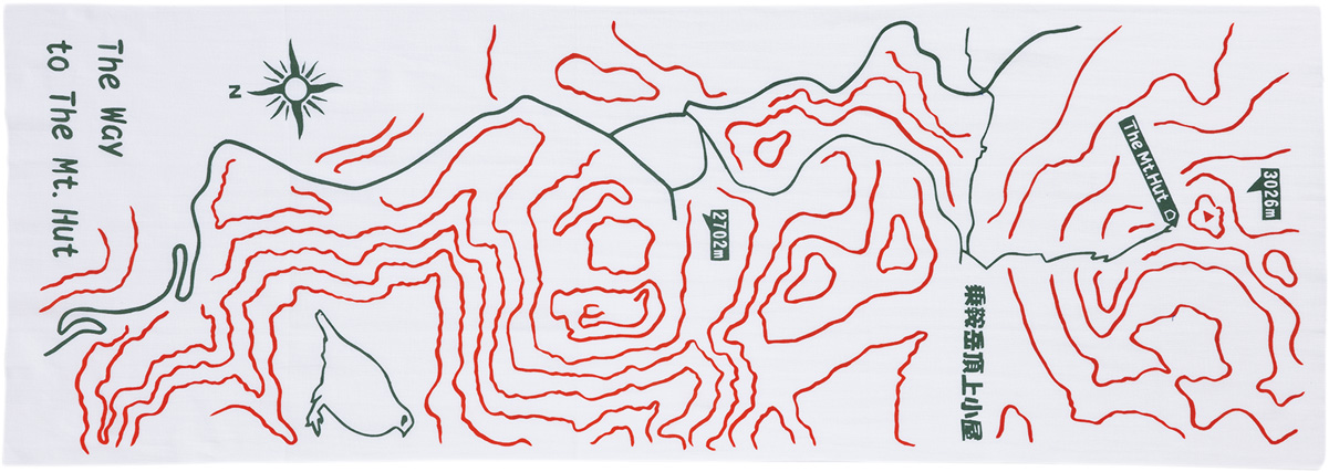 乗鞍岳山頂への道のりを描いた、等高線デザインが目を引く手ぬぐい。