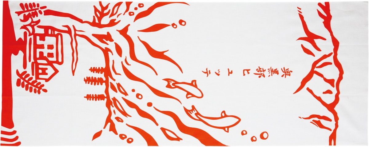 木の枝ぶりを川の流れに見立て、躍動感のある川魚を表現。2023年新発売になった1枚。