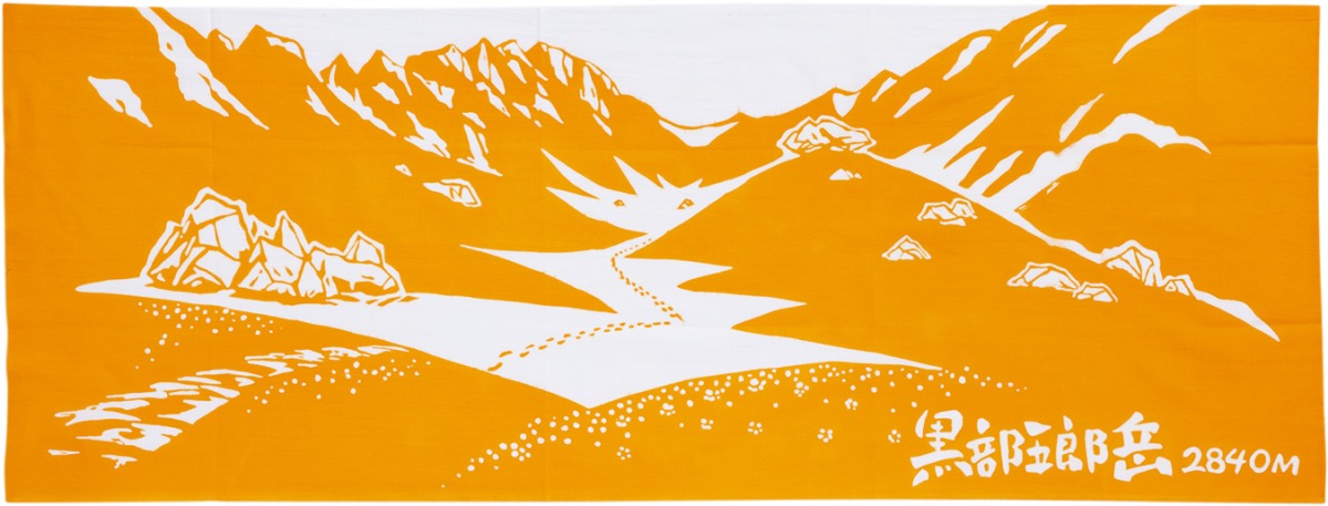 山小屋の手ぬぐいにはめずらしく文字がなく、力強い剱岳のみでデザイン。