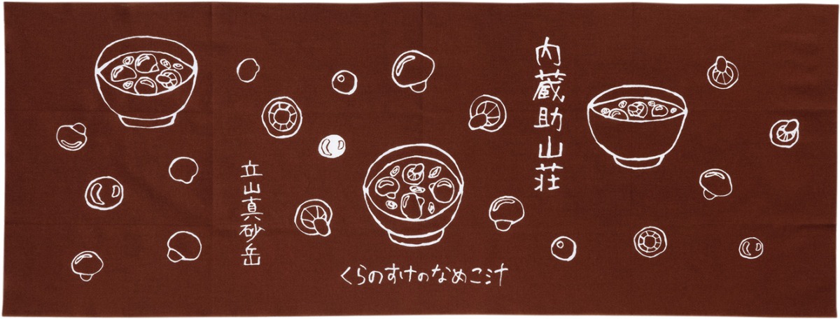 夕食に提供される山荘名物「なめこ汁」をゆる~くデザインした人気商品。