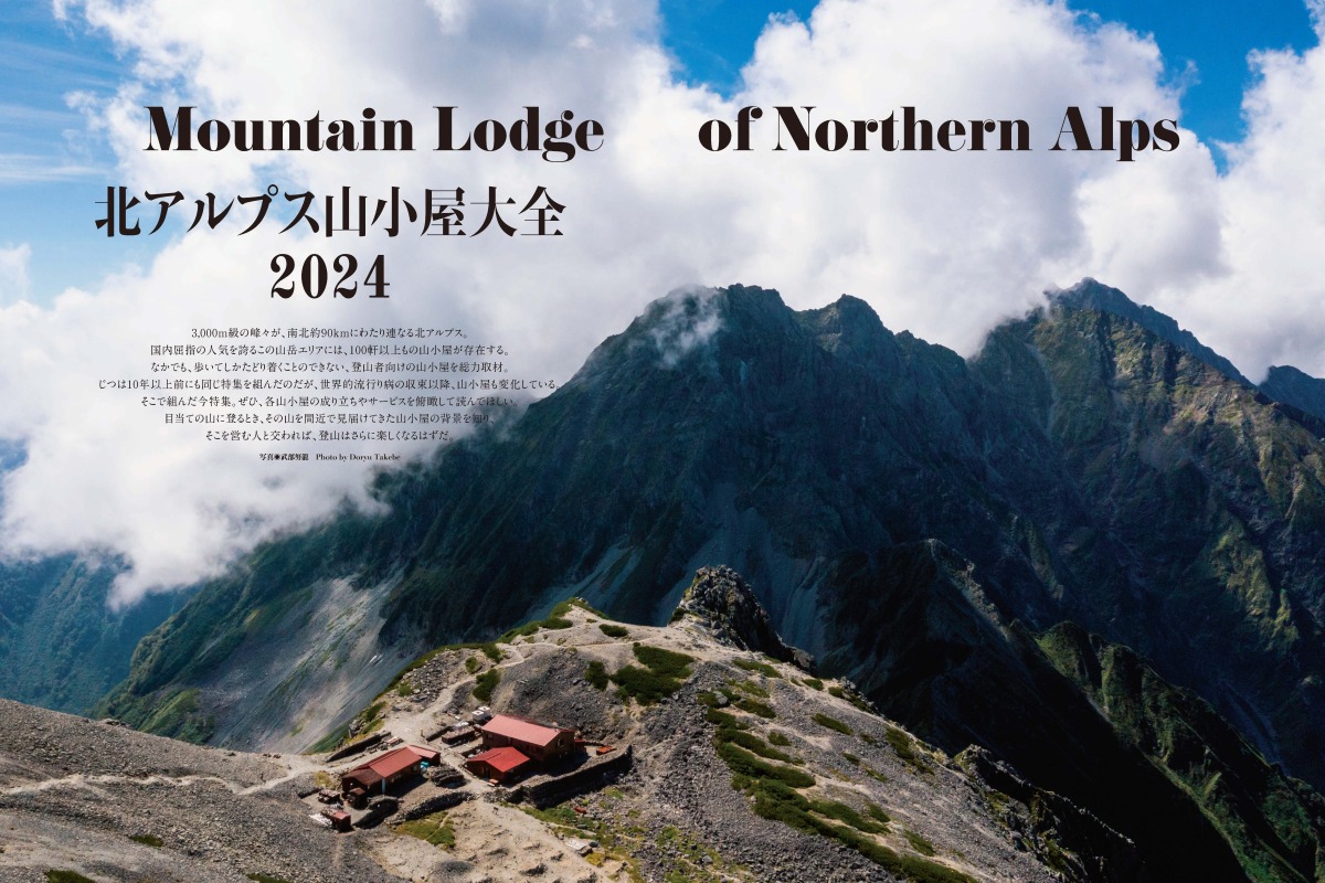特集は「北アルプス山小屋大全 2024」。4つのエリア別に、およそ100軒もの山小屋を総力紹介!