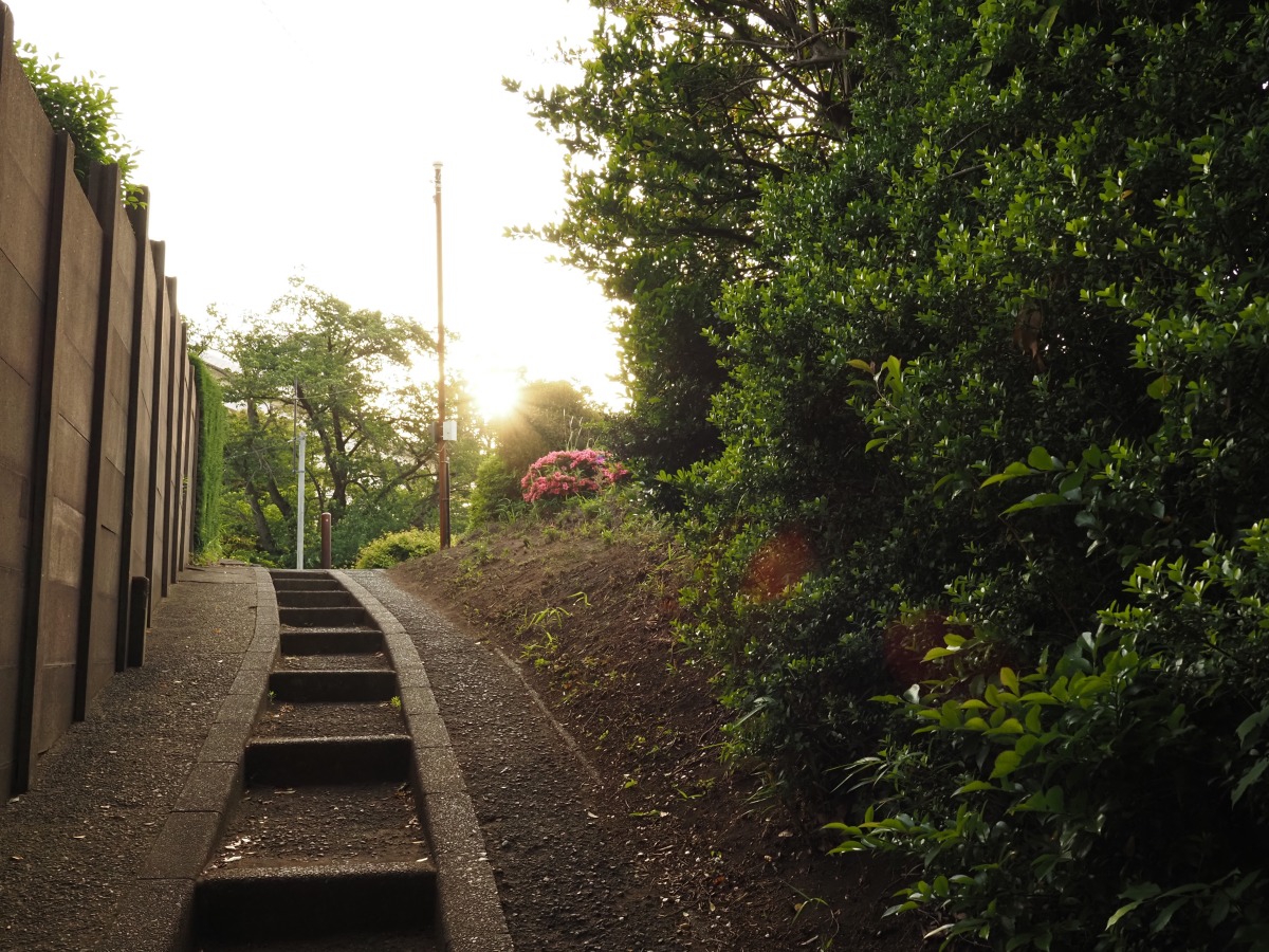「夕暮れどきの太陽の光がちょうど木にさしかかっているシーンで、光芒(こうぼう)という光の筋がアクセントに効いています。手前が暗めで奥が明るい、いわゆる逆光状態の写真ですが、奥に向かって明るく仕上がっているのがとてもドラマチック。左1/3に階段を入れる構図の取り方も上手で、ノスタルジックな雰囲気がすてきです」