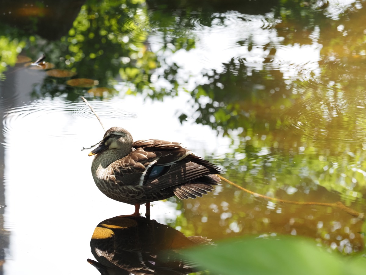 「被写体であるカモの水面への映り込みや、まわりの波紋がとても印象的な写真です。こうした水のある場所は画になりますね。あと被写体の手前がボケていることを前ボケといいますが、こちらの写真も右下に葉の前ボケを入れることでいい色のアクセントを添えつつ、奥行きのあるふんわりした仕上がりになっています」