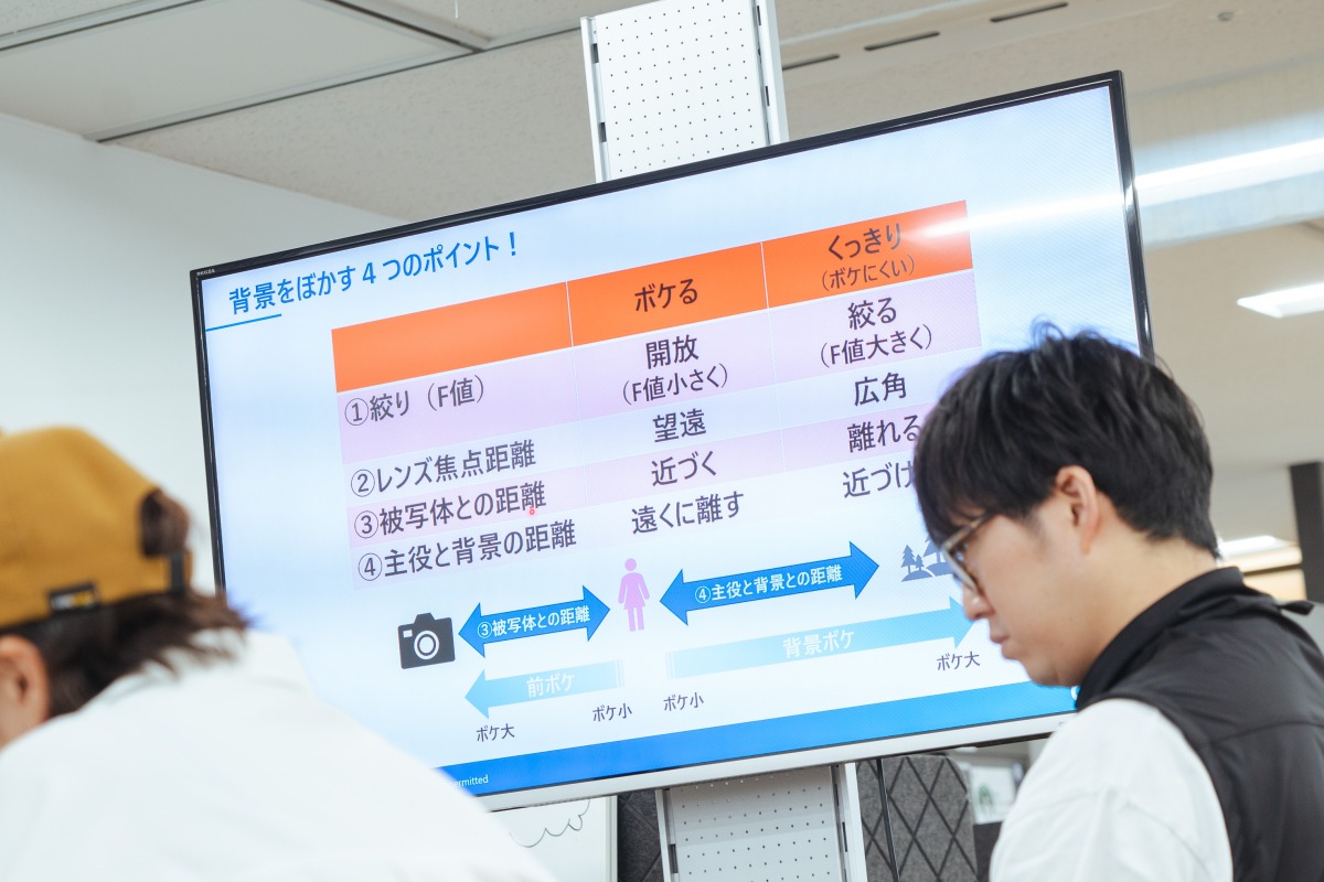 2回目の講座のおもな内容は、露出の三要素と呼ばれる「絞り」「シャッター速度」「ISO感度」。この3つの関係性を理解することで、一歩踏み込んでさまざまな写真を撮ることが可能になります。