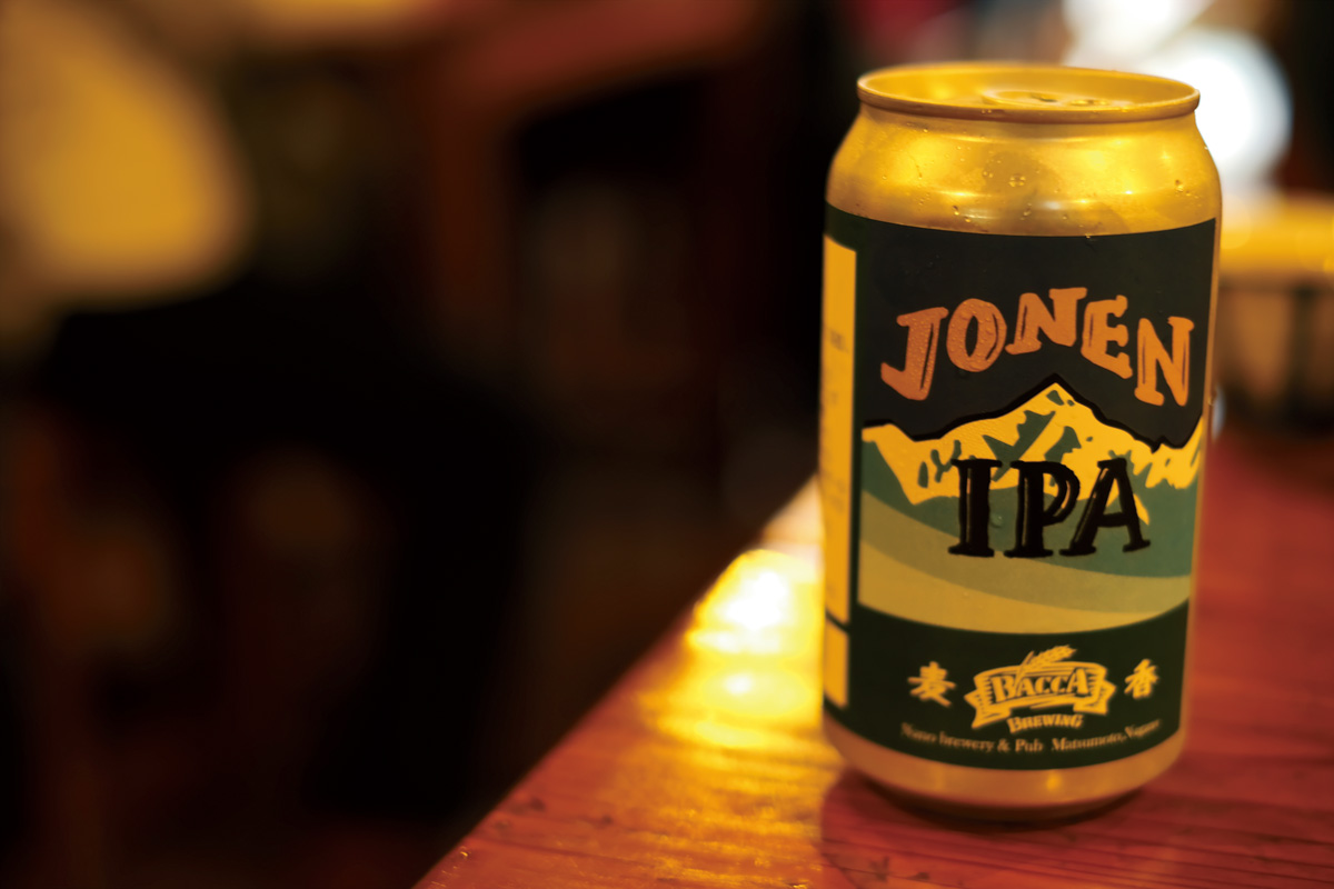 山の名前がついたクラフトビールを多数造っている、BACCAブルーイングの「常念IPA」。香りや苦味は“ザ・IPA”ですが、度数控えめで飲みやすい! 山名を冠した缶ビールを本家本元のもと傾ける……無上のよろこびです。