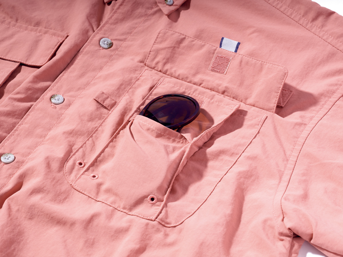 ドライで速乾性のあるナイロン生地だが、コットンのような柔らかな風合いで着心地も角度高め。フィッシング用のディテールも汎用性があり、使い手次第だ。全8色展開で半袖モデルも選べ、必ず好みに当たるぞ。