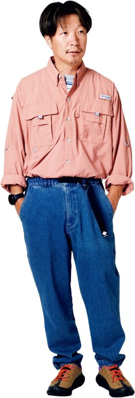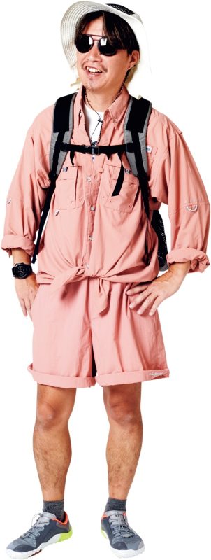 ボックス的な大ぶりな感じだから、基本オーバーサイズが合わせやすい。山コーデはチャラく裾をギャル巻しちゃったけど、おじさまでも堂々とタックインをおすすめしたいね。長パンにシャツ出しすると逆に野暮な感じになるから注意したい。シャツのデザインによってはOKなものもあるけど、コイツはインだ。