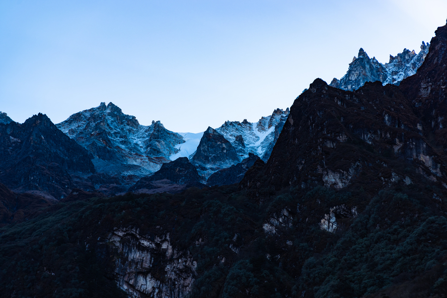 タンギャムについた翌日、朝になると体調を崩していたふたりも僅かに回復したように見えた。この日は予定どおり、標高約3,500mにあるグンサを目指すことになった。いよいよ富士山の標高3,776m にも近くなってきた。体調のこともあったので無理のないペースで歩みを進めた。途中、雲の切れ間から雪のついた鋭峰が見えた。なんの山かはわからないが、いよいよ登山が始まるという気持ちが高まり興奮していた。