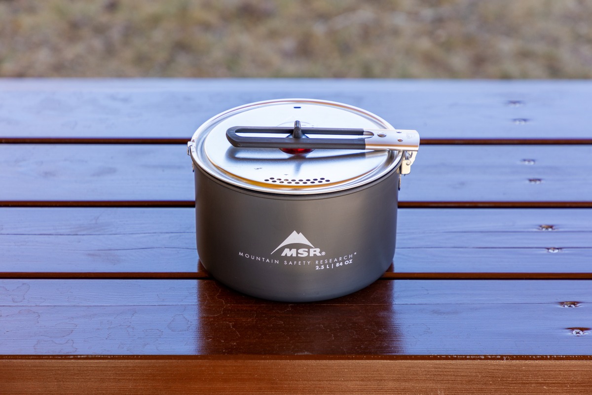 もしかすると、フラットな底面よりも膨らみがバーナーの火を効率よく受け止め、水や調理する食材に熱を伝える機能もあるのかもしれない。実際はどうなのかわからないが、MSRであれば、それくらいのことを考えていそうだと思う。