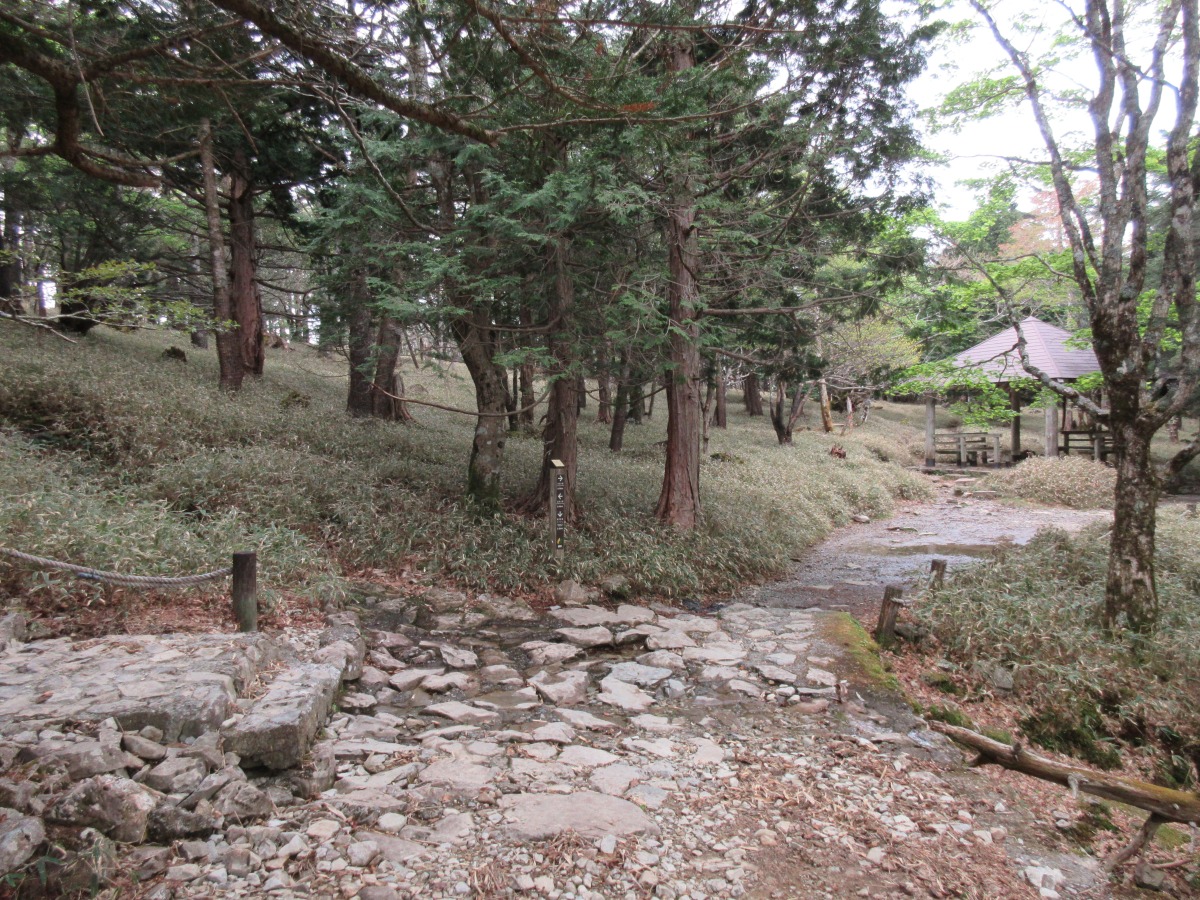 ▲ビジターセンターから続く中道と外周路が合流する尾鷲辻。東屋でめはり寿司をほおばる。